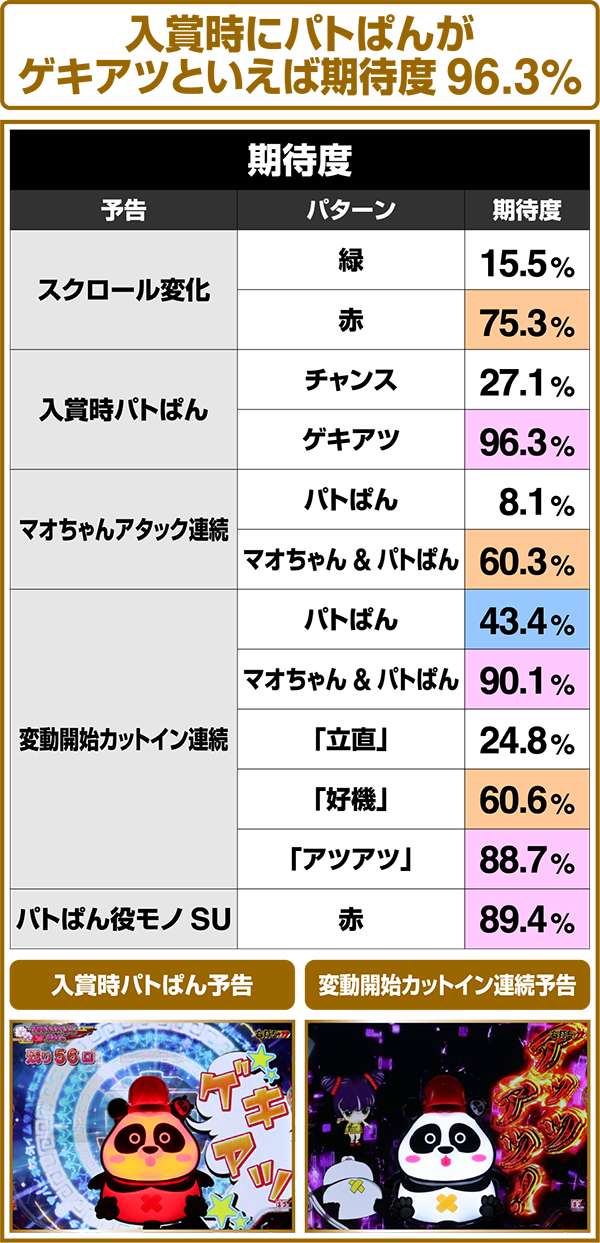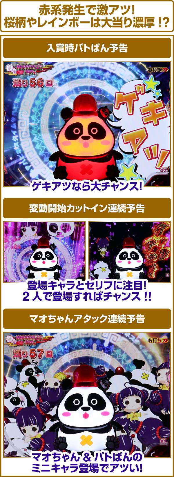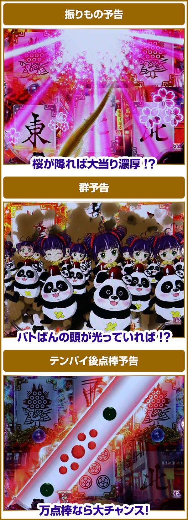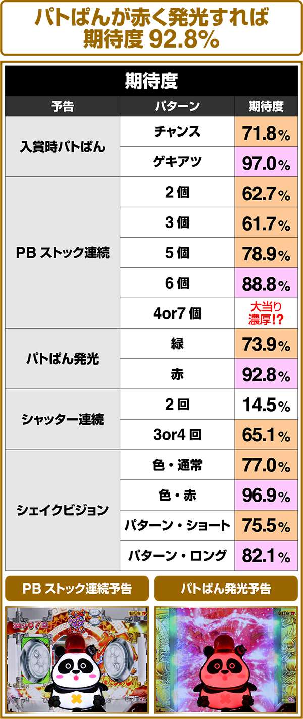 先読みはほかに画面中央のパトぱんが発光する予告もあり、緑や赤などに光れば大チャンス。