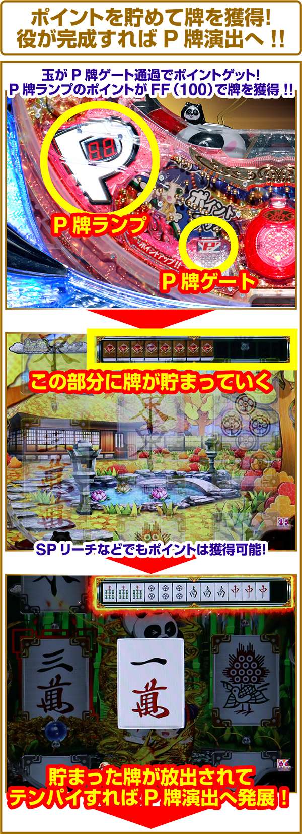 P牌ランプは累計ポイント数によって色が変化するが、期待度には影響しない。