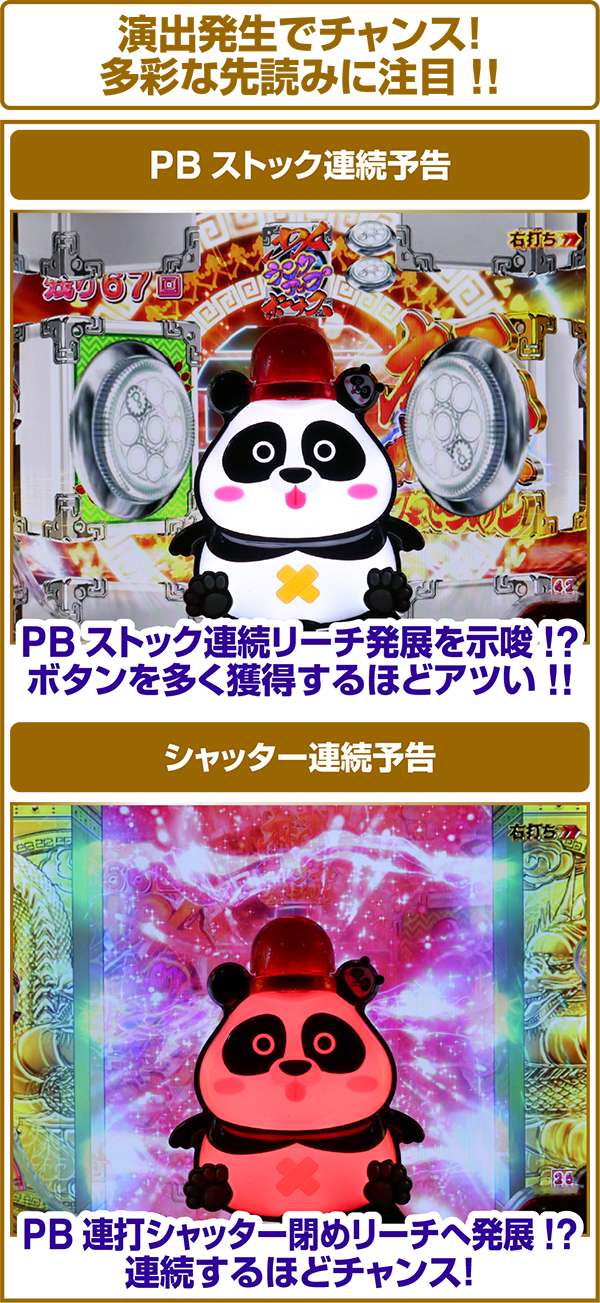 PBストック連続予告とシャッター連続予告はそれぞれに対応したリーチ演出へ発展。