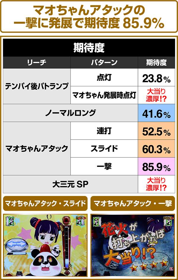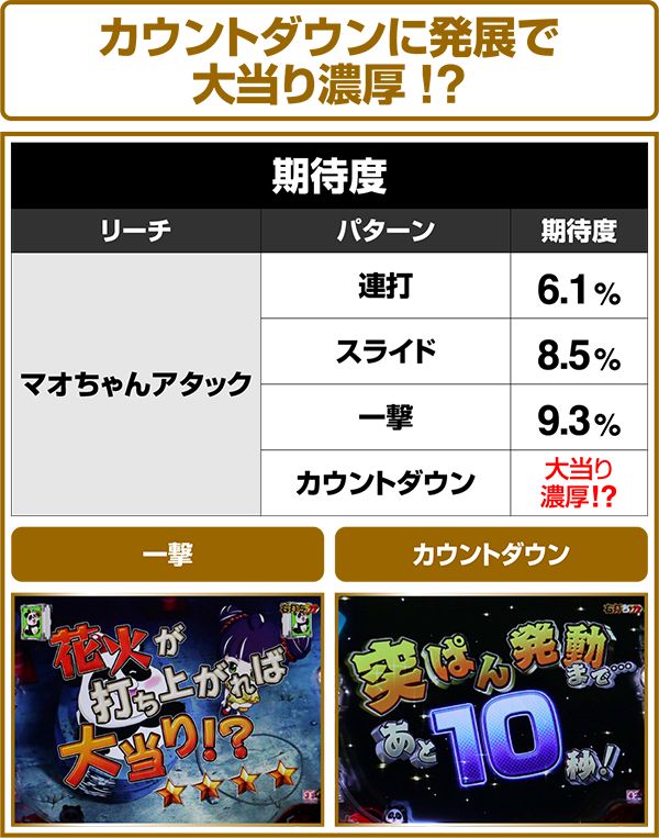 マオちゃんアタックリーチはハピネスタイムへの道でも出現。パターンは連打<スライド<一撃の順にアツくなる。