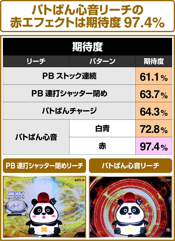 ST中は、どのリーチも発展しただけで大チャンス。パトぱん心音リーチはST中最強の期待度となっている。