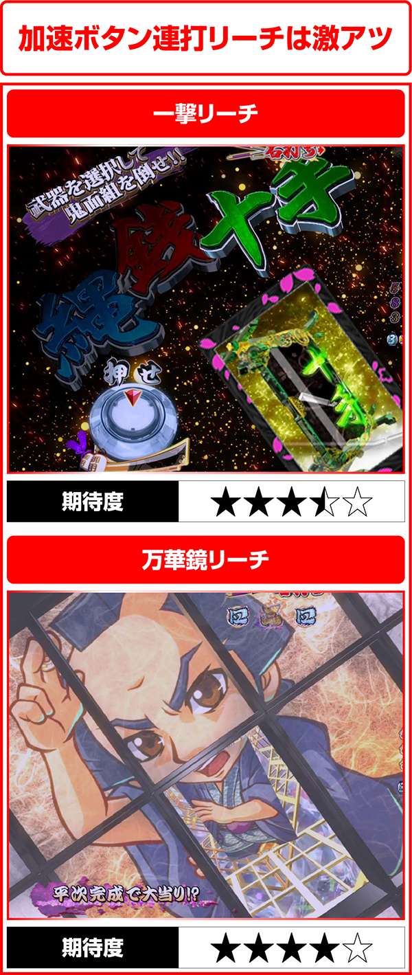 加速ボタン連打リーチは大江戸捜査モードだけでなく、あっぱれモードでも出現。