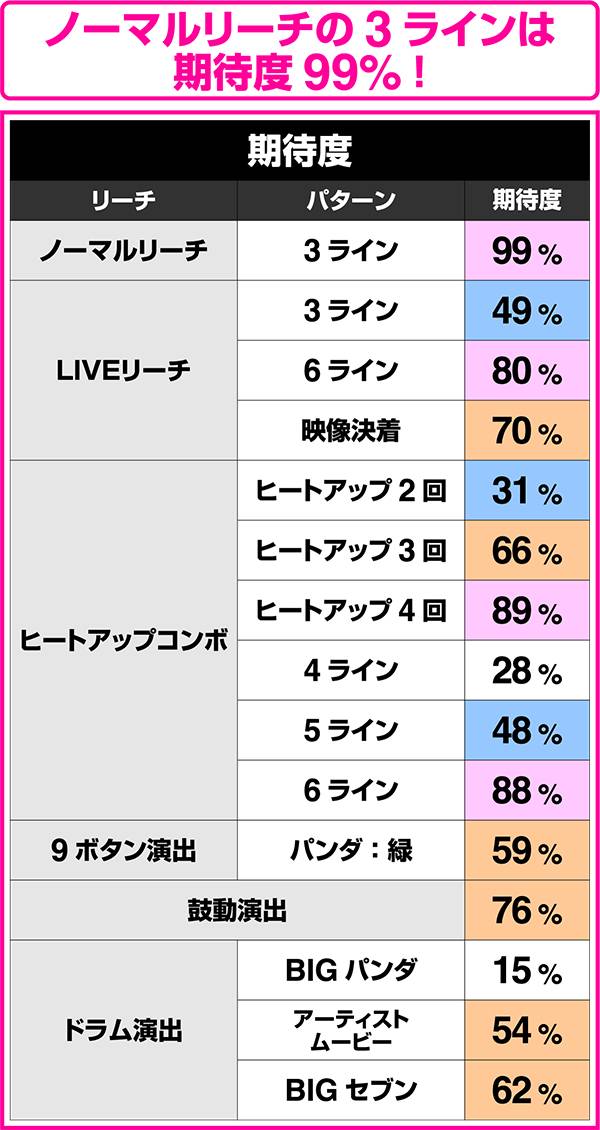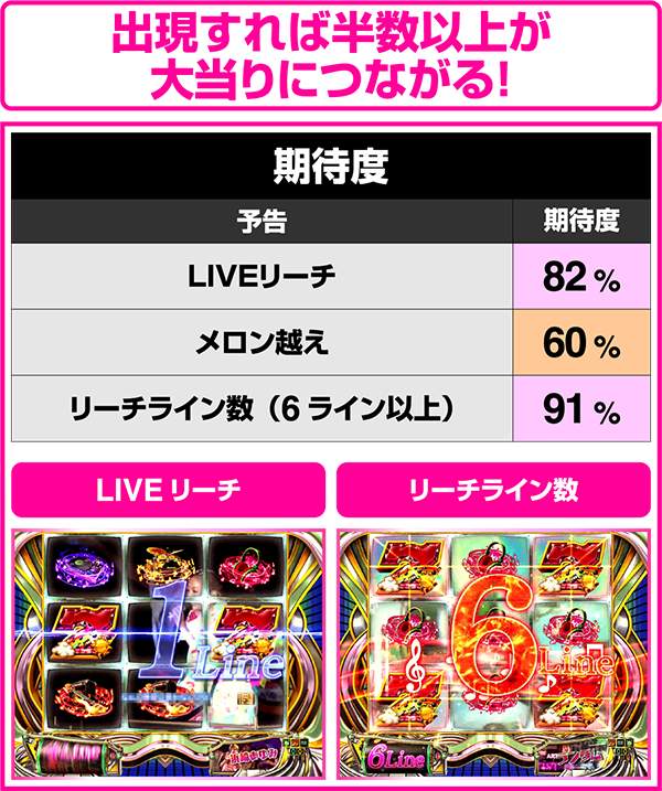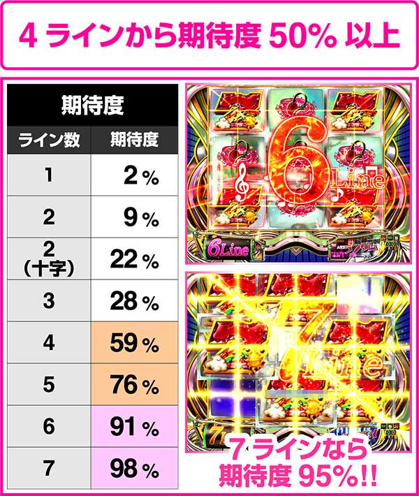 リーチライン数が増えるほど、期待度も上昇する。