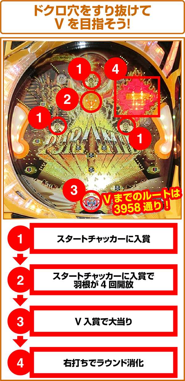 Vに入れば大当りと単純明快だが、Vまでのルートが3958通りと奥が深い。玉の動きでパチンコ本来の楽しさを堪能しよう。