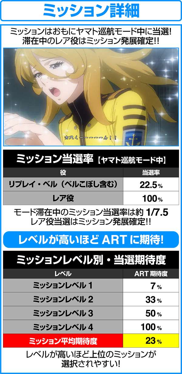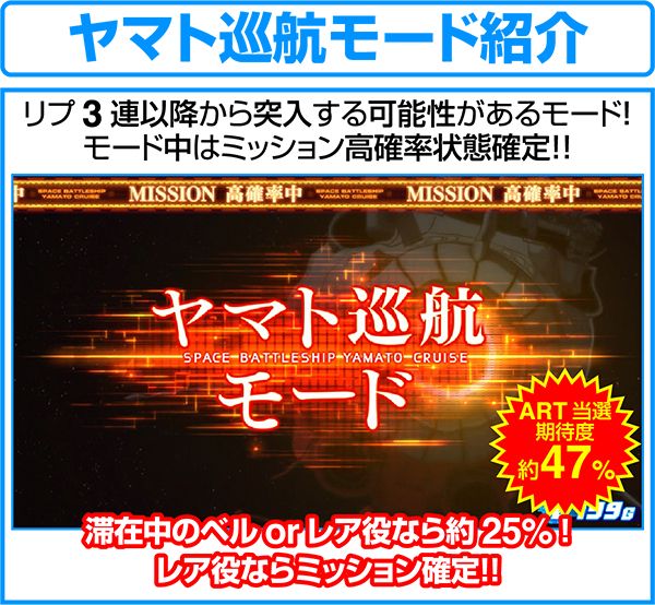 また、ヤマト巡航モード中は約7.5分の1でミッションに当選する。