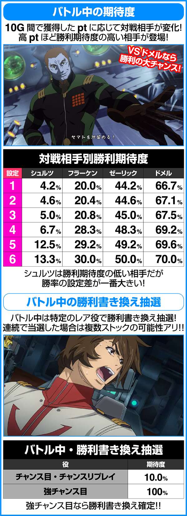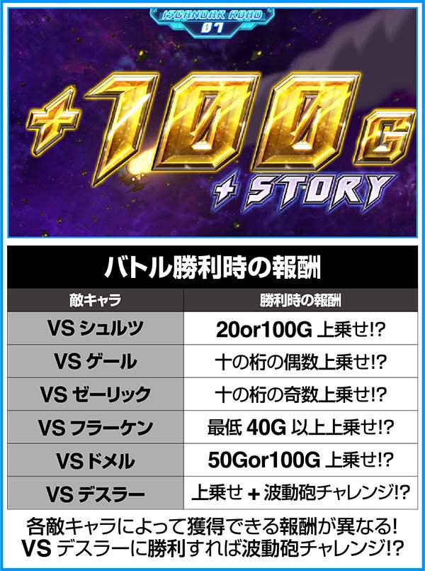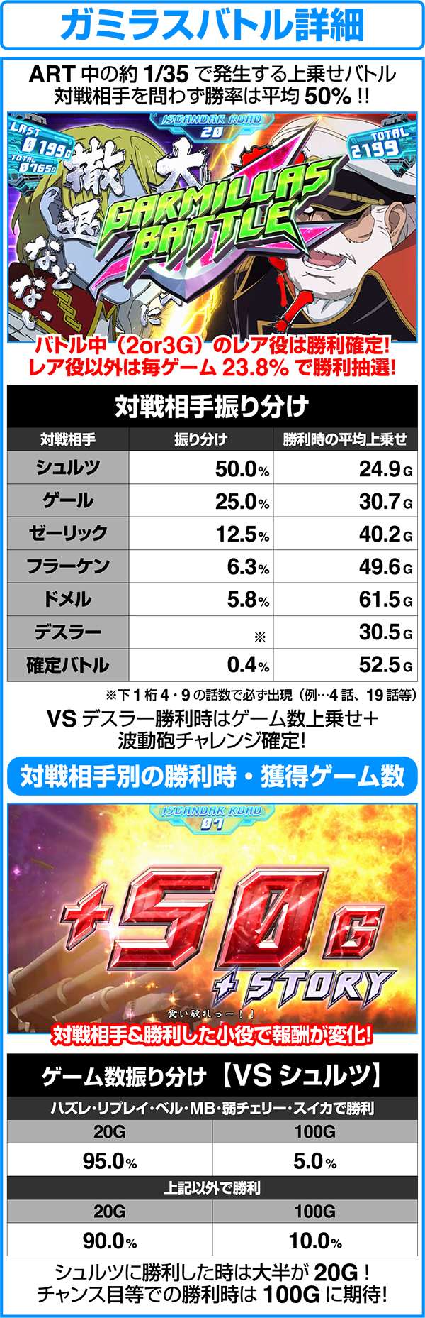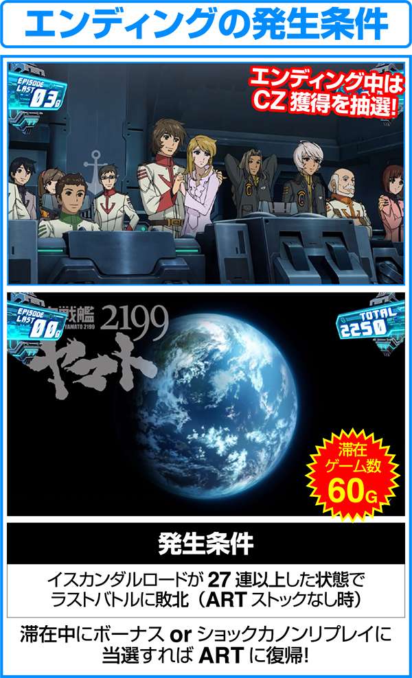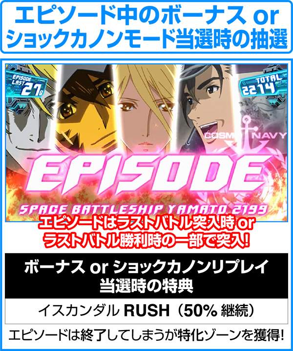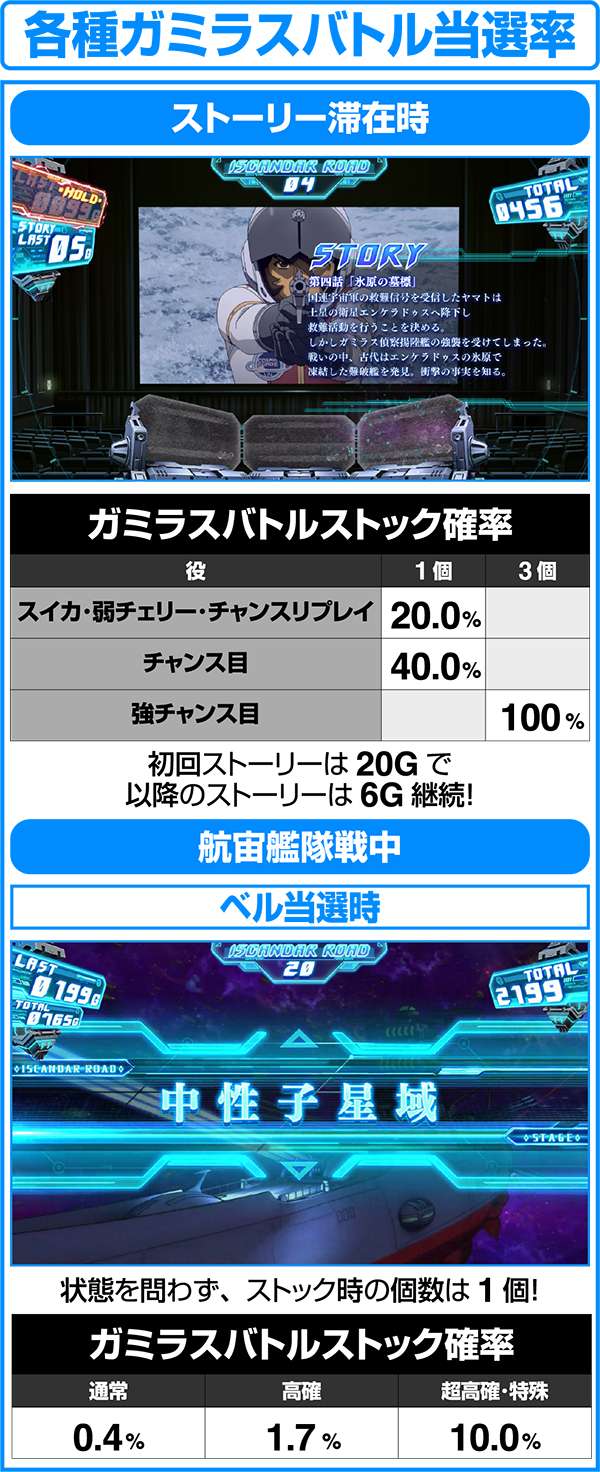 また、エピソードは30G継続し、滞在中はガミラスバトル獲得の抽選をおこなう。上乗せしたガミラスバトルはエピソード終了画面で告知する。