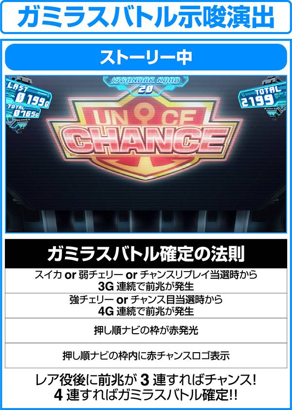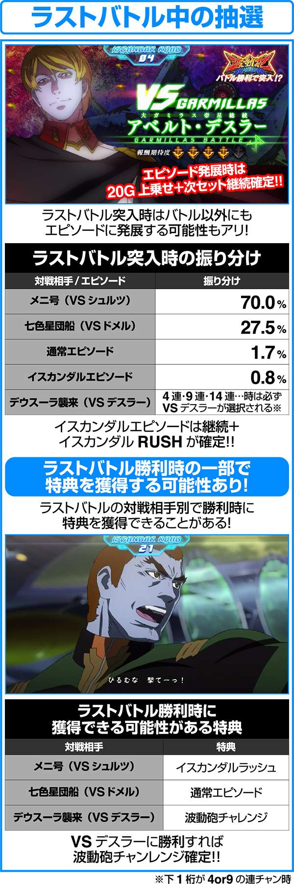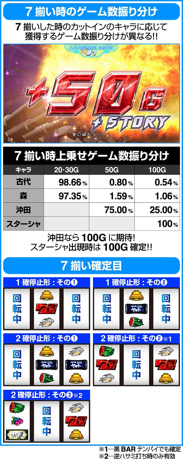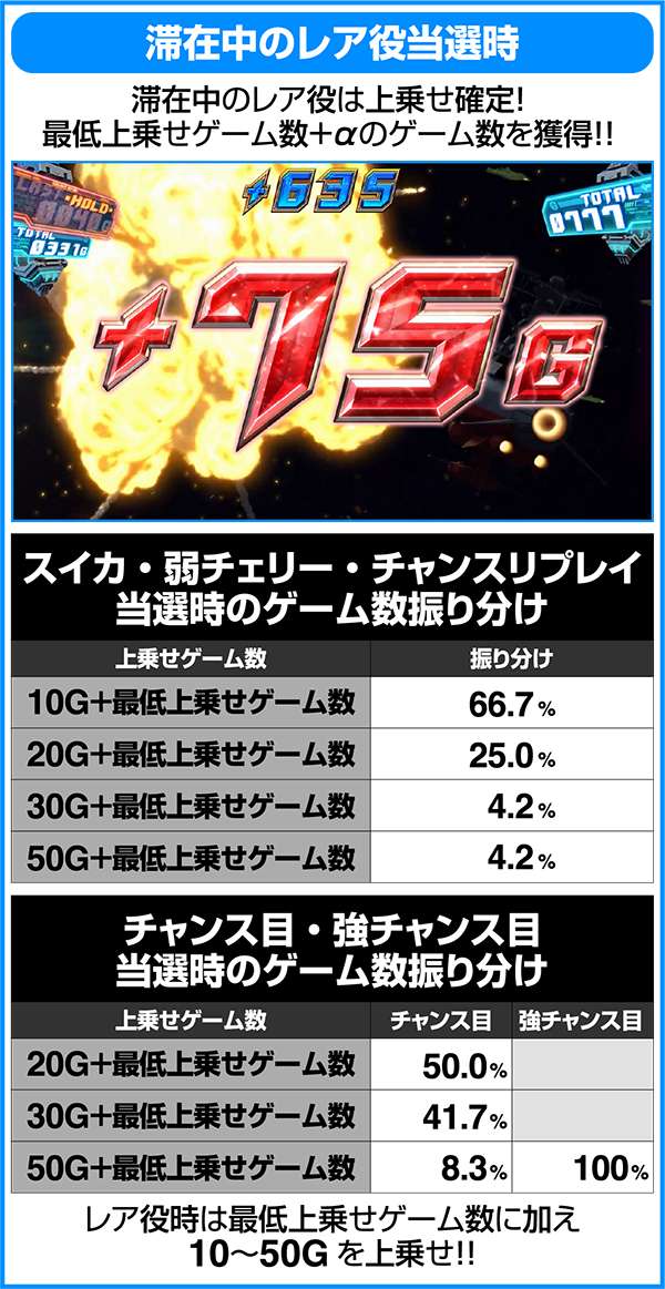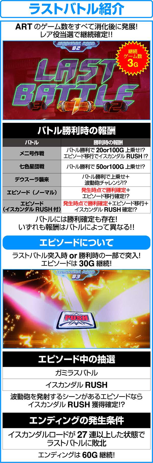 また、エピソードは30G継続し、滞在中はガミラスバトル獲得の抽選をおこなう。上乗せしたガミラスバトルはエピソード終了画面で告知する。