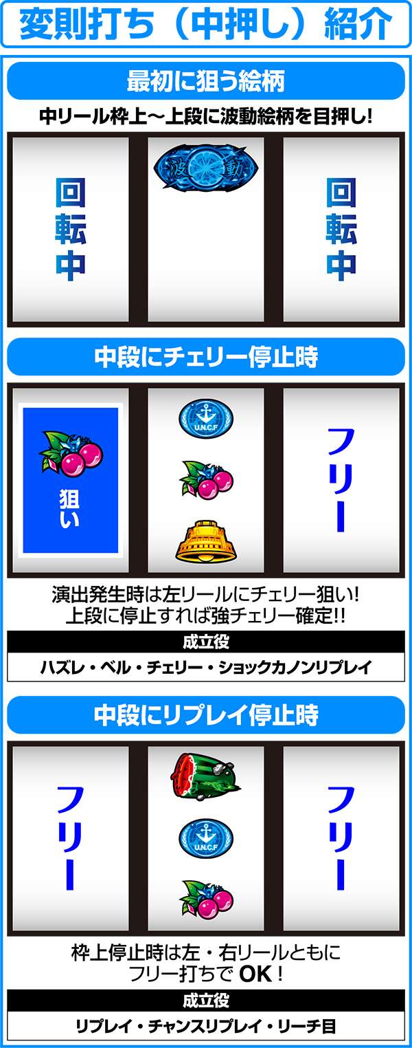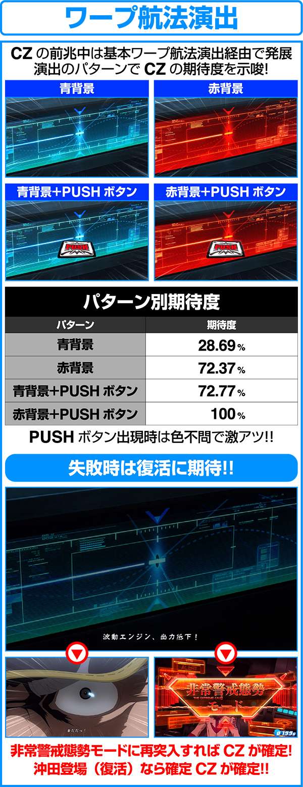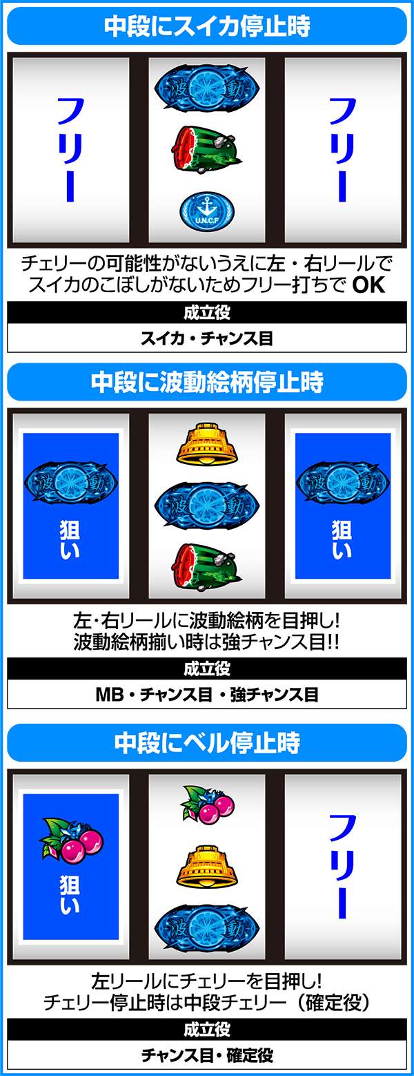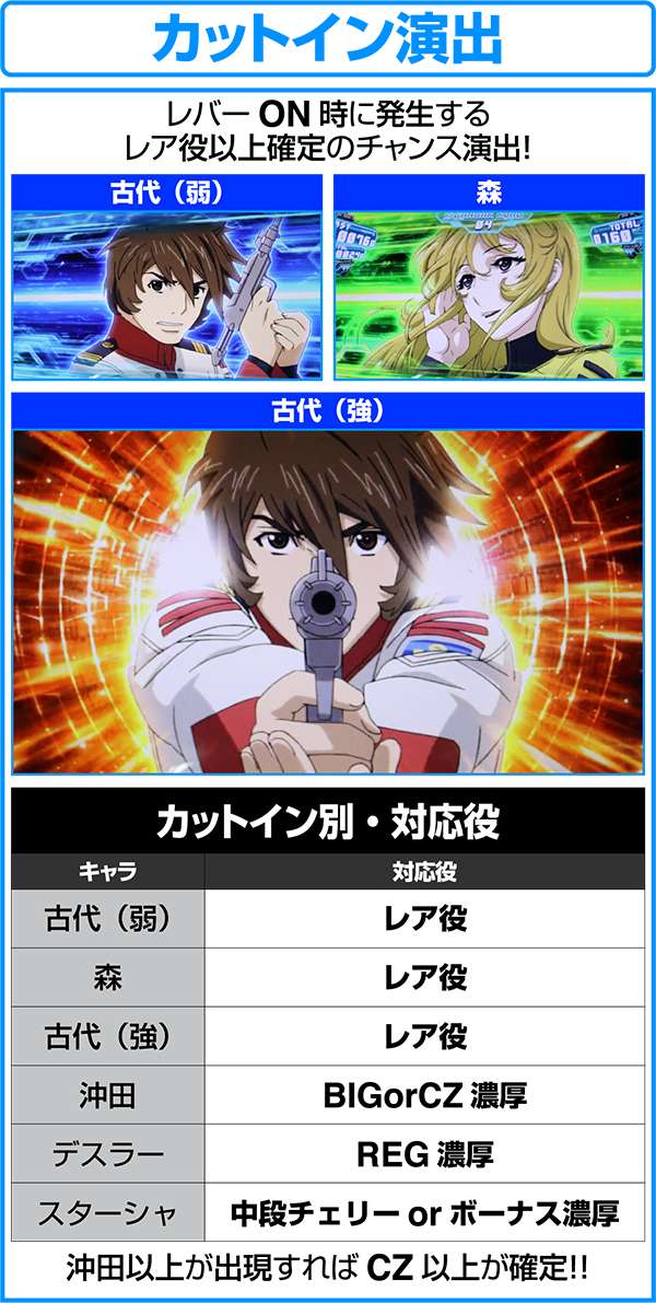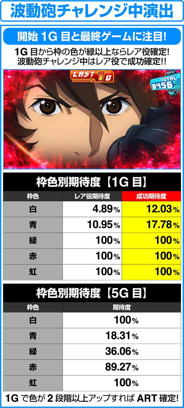 波動砲チャレンジ中はレア役当選で成功確定となる。そのため、滞在中のMB成立は波動砲チャレンジ成功のチャンスとなる。