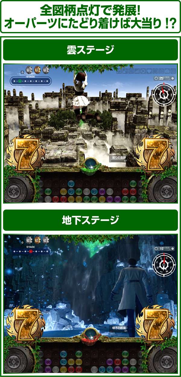全図柄点灯後に雲ステージは豆の木発見から、地下ステージは土管発見から発展。