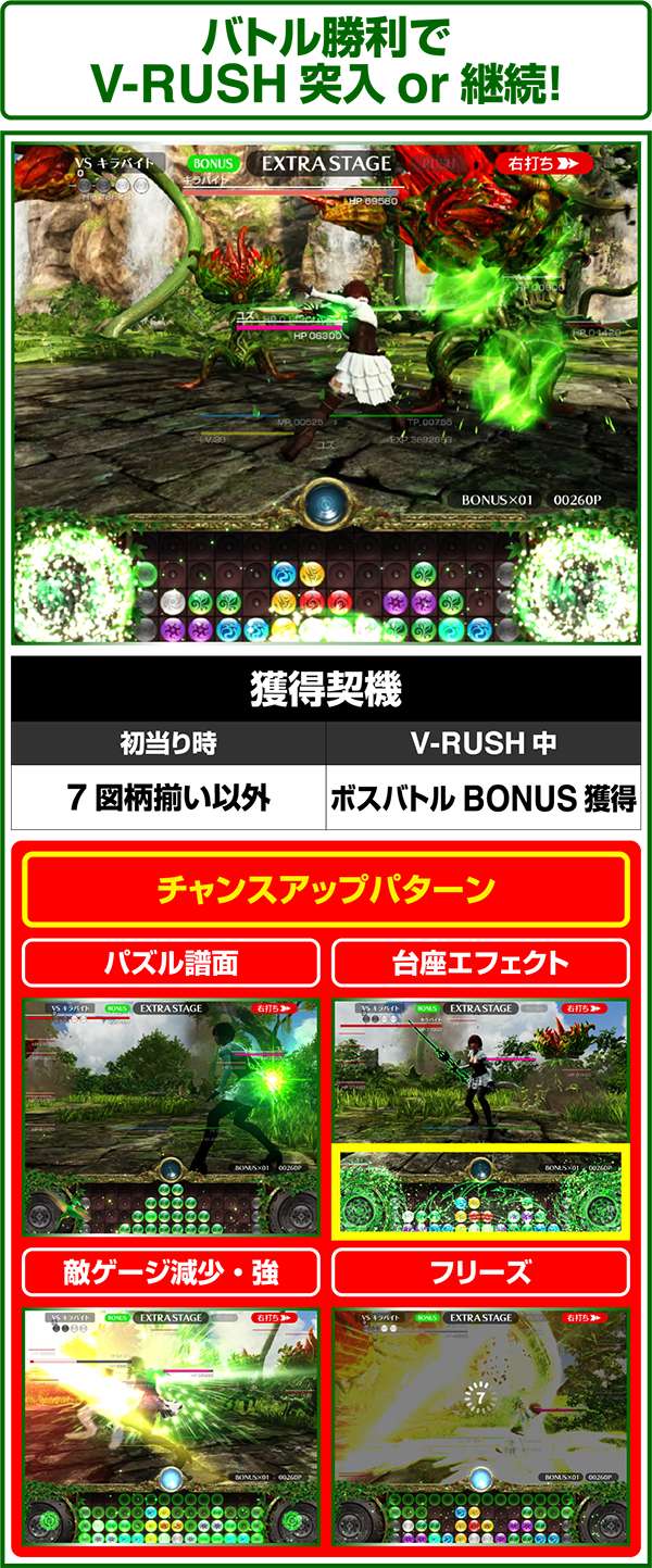 V-RUSH中に獲得。ボスバトルBONUSより期待度が高い。ラウンド中の背景は昼<夕<夜の順にアツく、夜ならV-RUSH継続濃厚!?