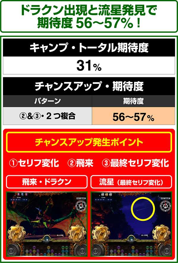 チャンスアップは複合個数が重要となり、3つ複合で大チャンス。