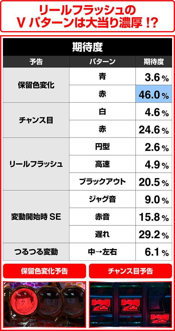 保留色変化予告は白点滅<青<赤の順にチャンス。変動をまたいで色が変化することもあるぞ。