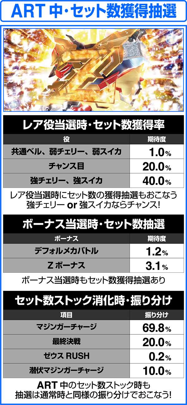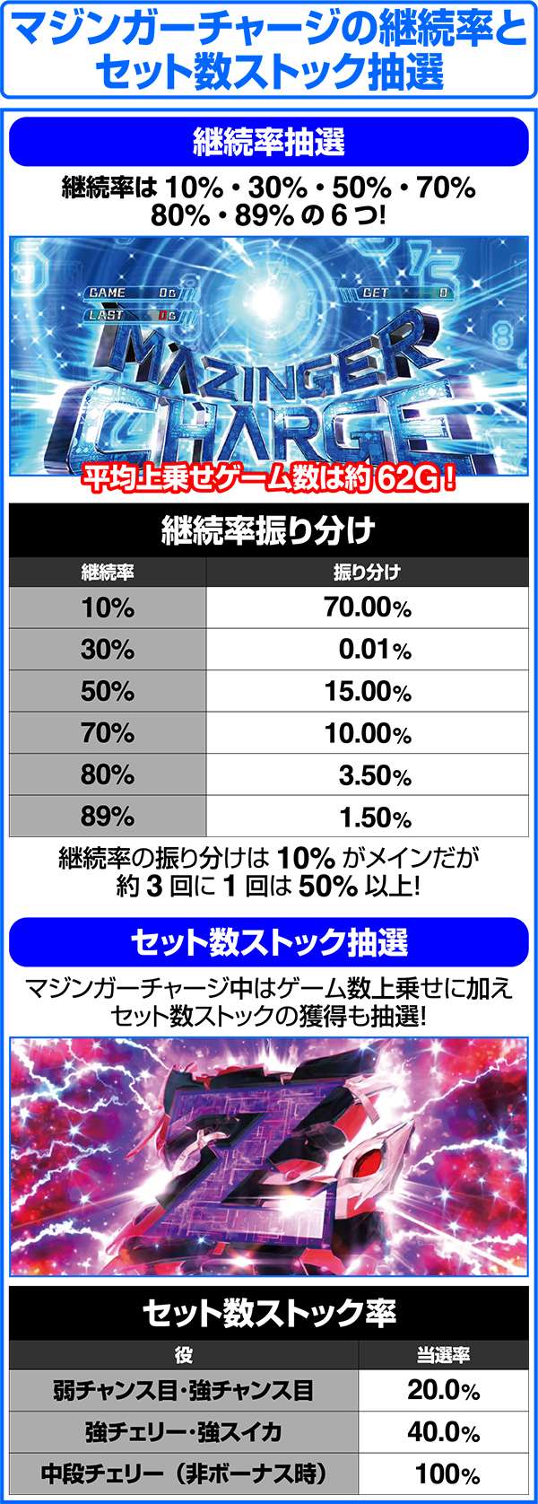 マジンガーチャージの継続率とセット数ストック抽選