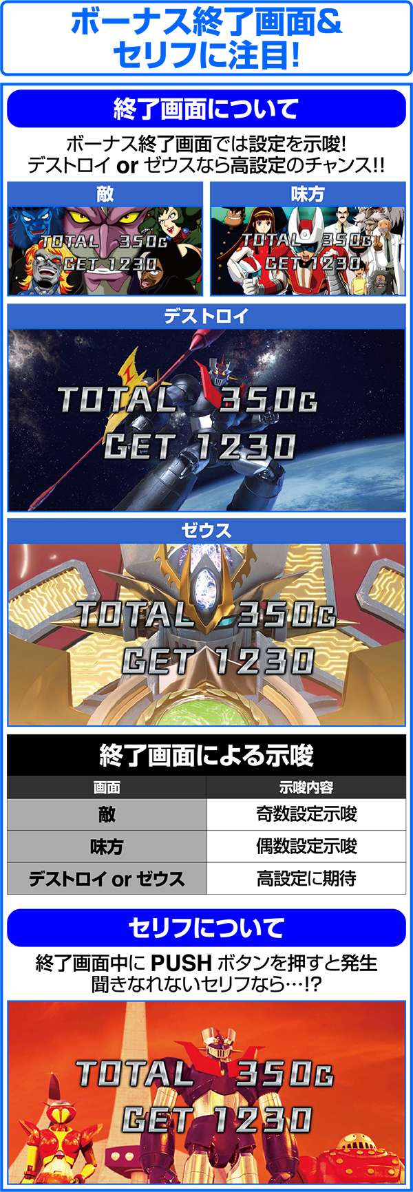ボーナス終了画面&セリフについて