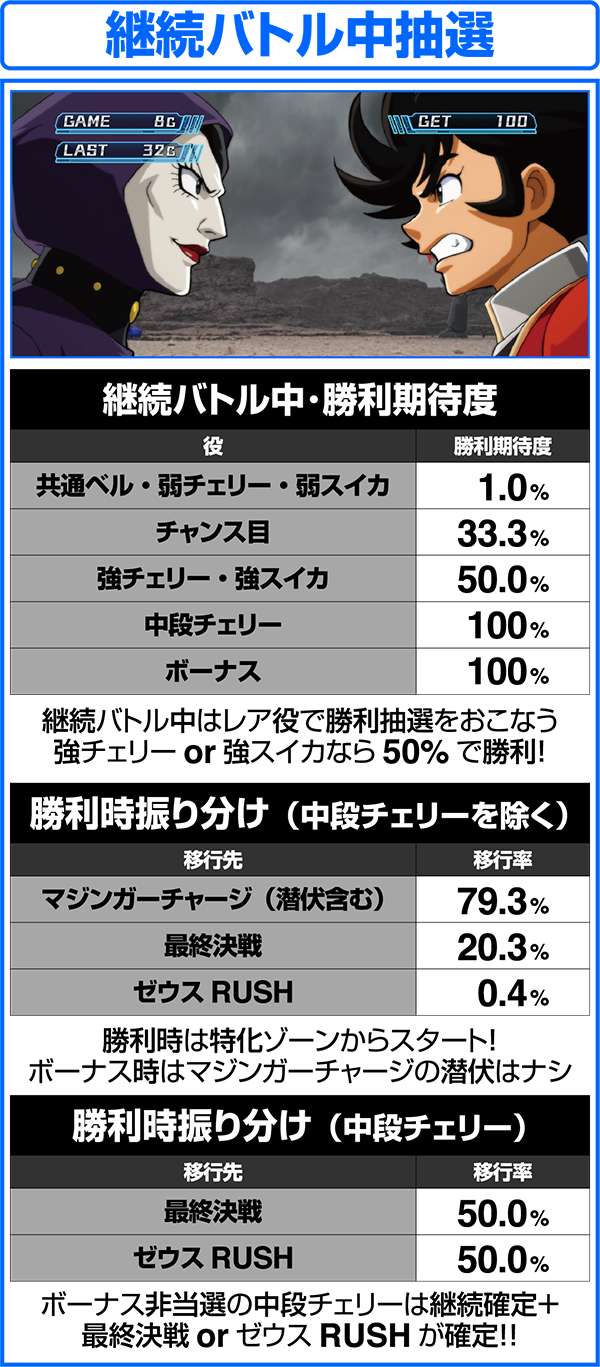 また、最終決戦は暗黒大将軍に勝利できなくても、10or20G継続すれば、特化ゾーンに突入する。