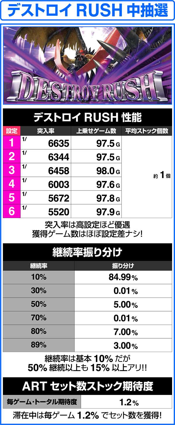 デストロイRUSHとゼウスRUSHの初当り確率とは、ART初当り時の特化ゾーンがデストロイorゼウスRUSHスタートのことを指す。