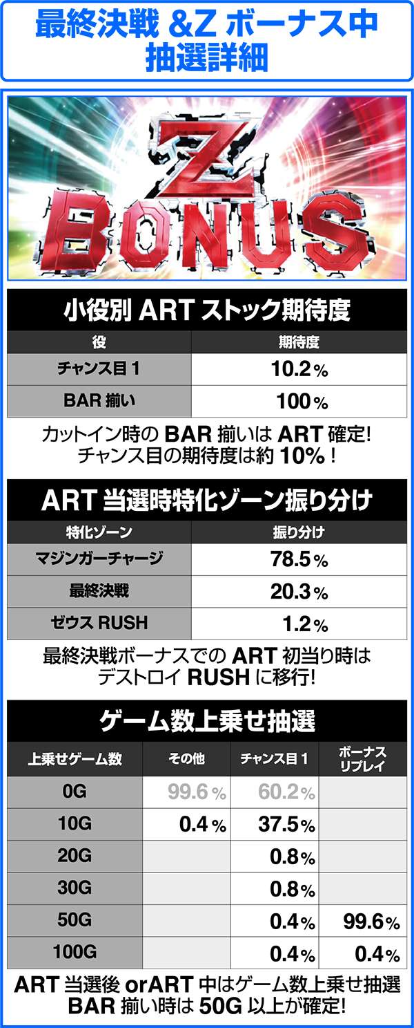 最終決戦&Zボーナス中抽選詳細