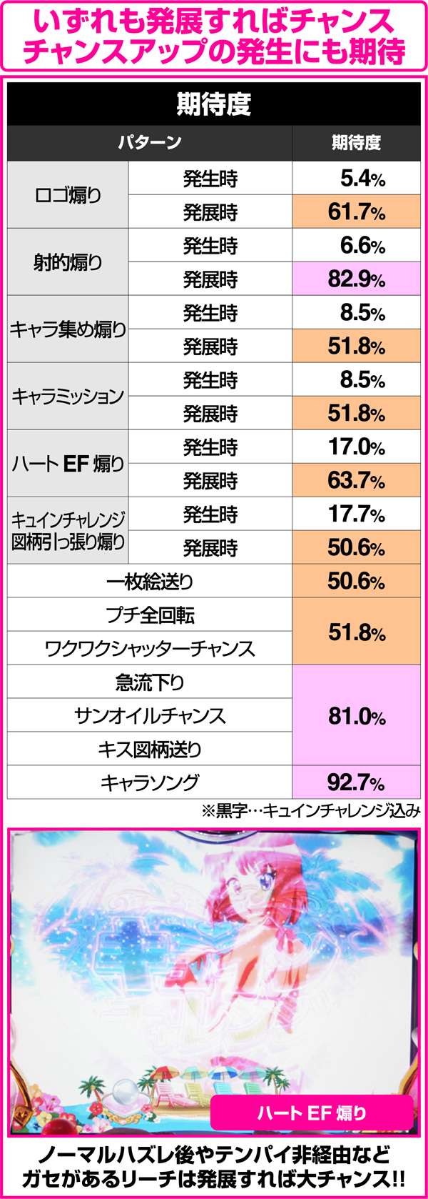 キャラミッションなどは、専用の発展前演出のガセをふくめると低期待度だが、発展すればアツい。
