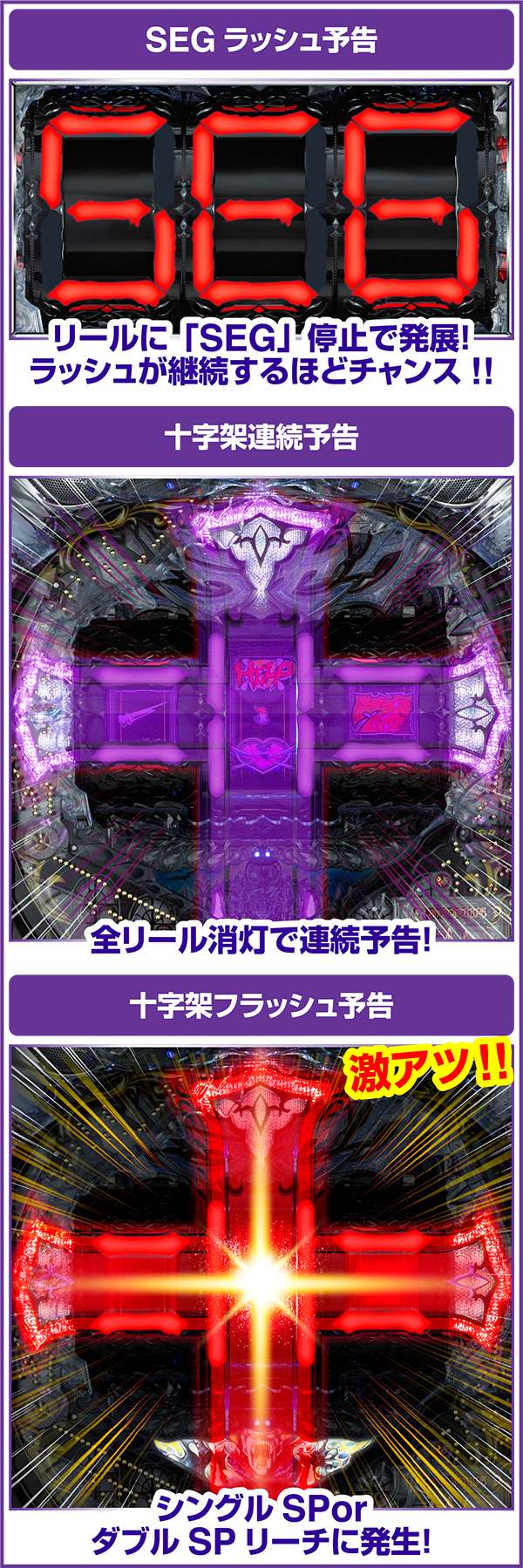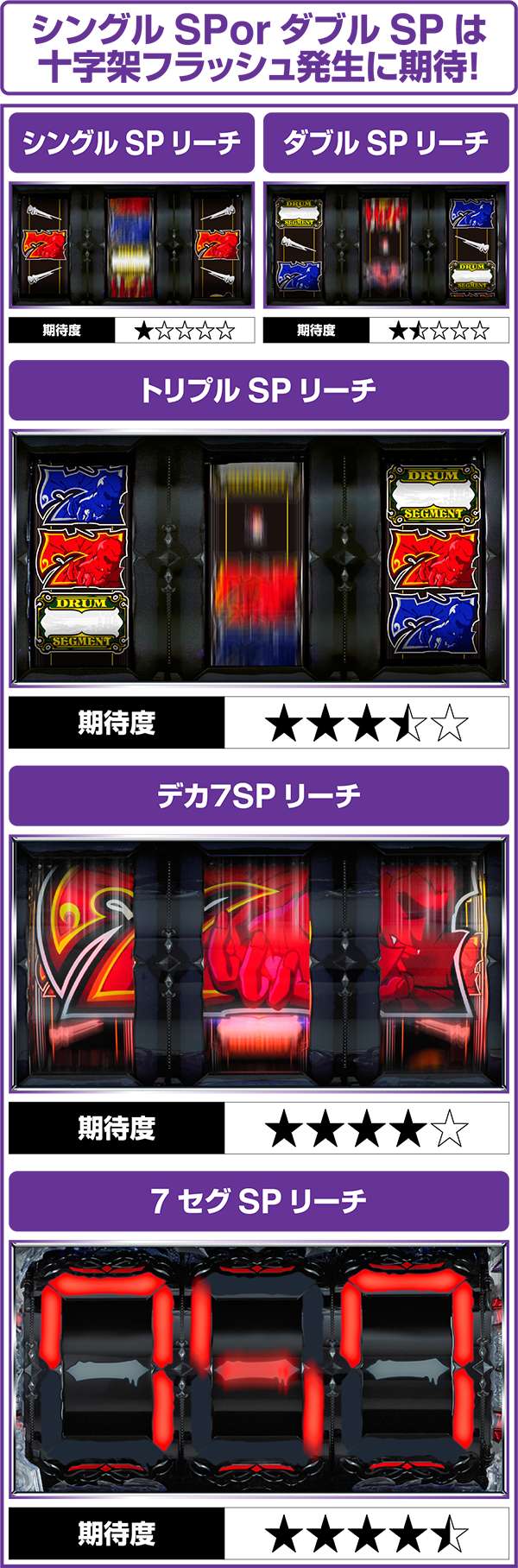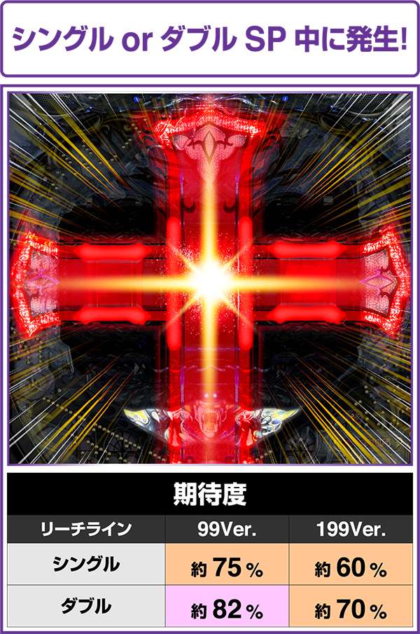 シングルSPとダブルSPリーチ中に十字架フラッシュが発生すれば期待度は星4つ相当まで上昇。