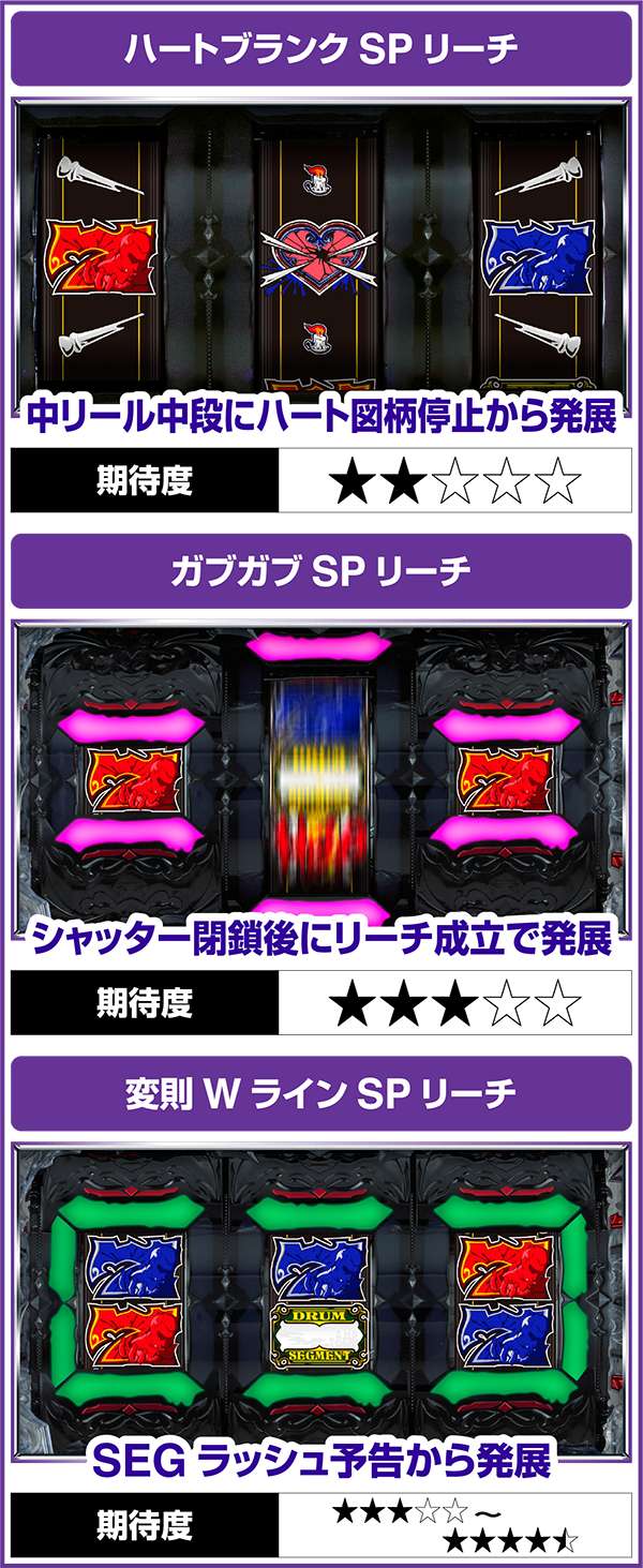 ハートブランクSP、ガブガブSP、変則WラインSPリーチは特殊発展系のリーチとなっている。
