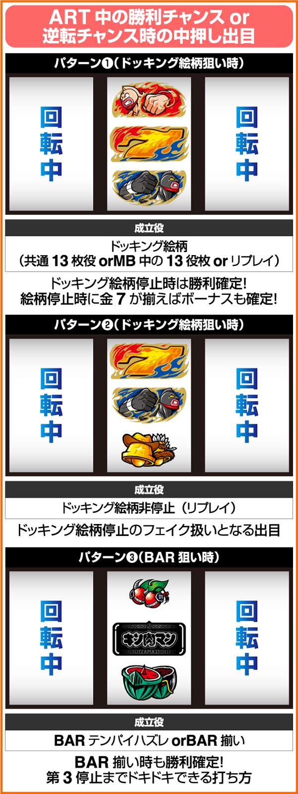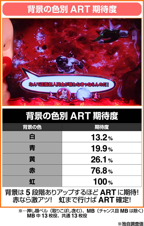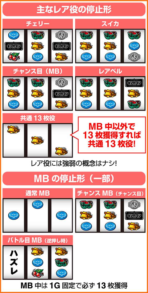 また、通常MBとバトルMBは逆押し以外では、判別が困難だが、ART中のバトル目MBは逆押しナビが発生するため通常MBとバトル目MBの判別が可能となっている。