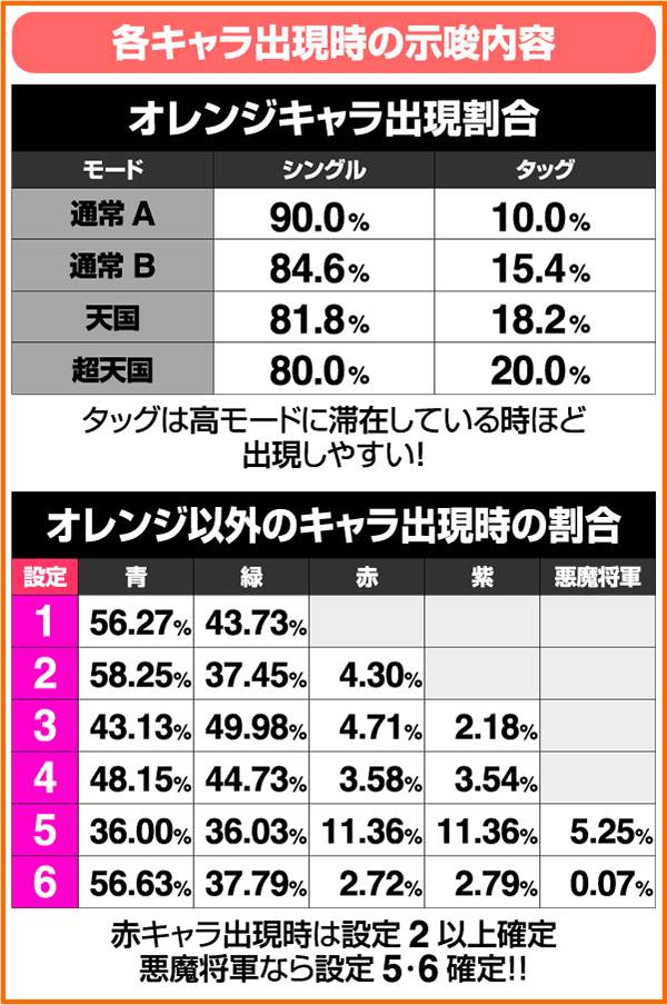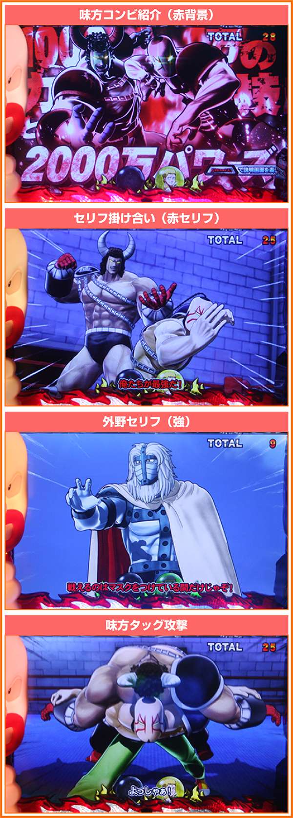 また、紫キャラは設定3以上となるうえ、悪魔将軍が出現すれば設定5以上が確定する。