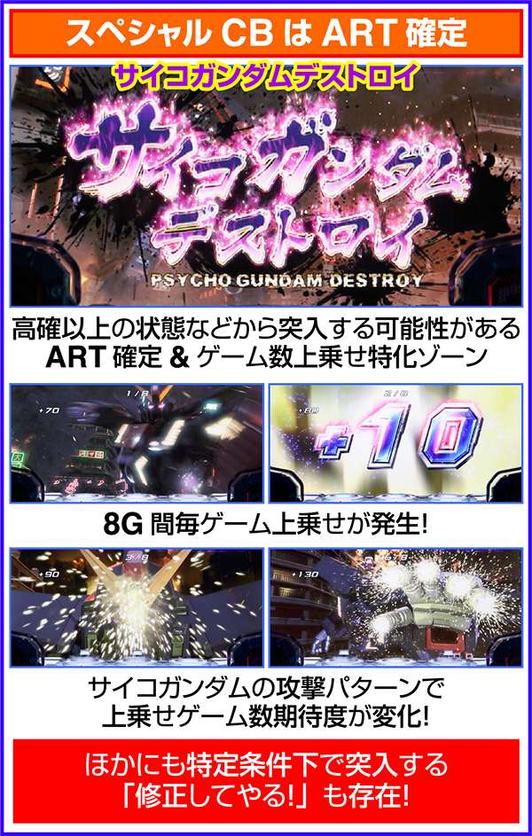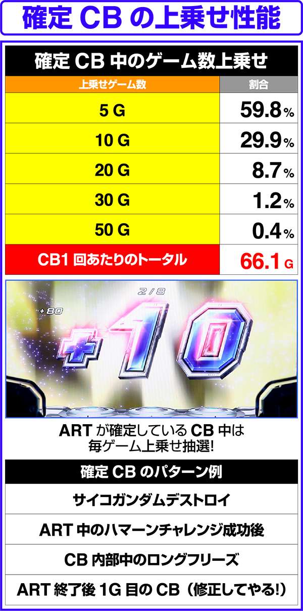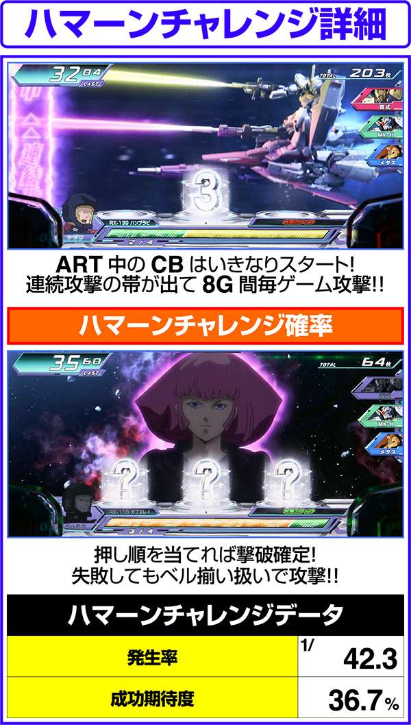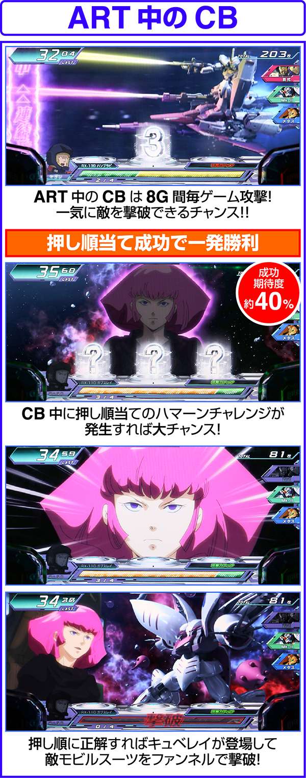 ハマーンチャレンジに成功した場合、CBの残りゲームではARTのゲーム数上乗せがおこなわれる。