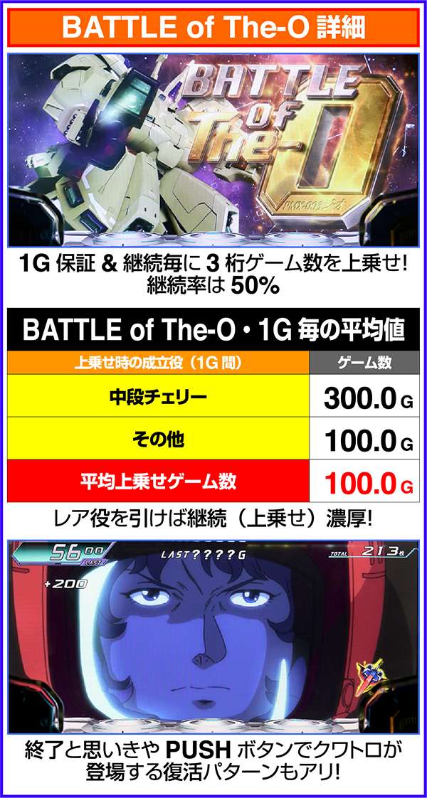 とくにBATTLE of The-Oは100G単位で上乗せするため、一撃性を秘めている。