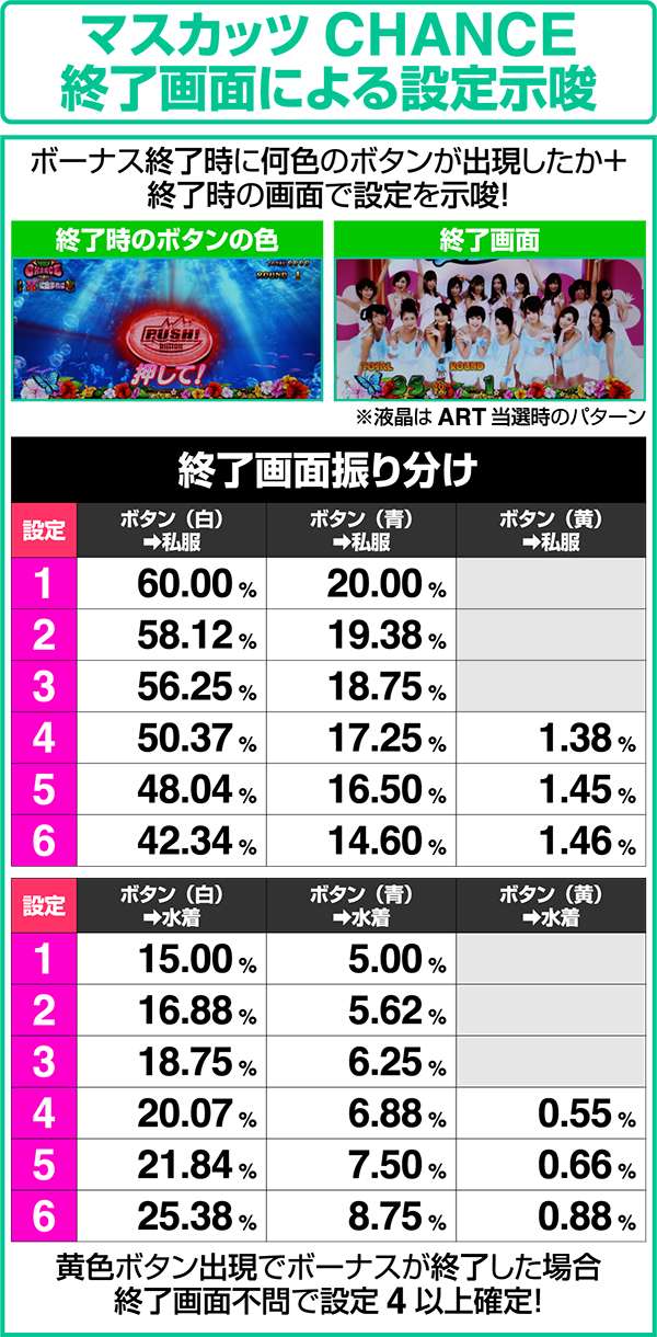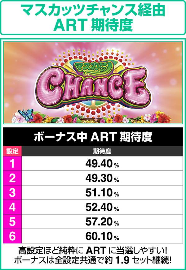 マスカッツCHANCE(ボーナス)終了画面による設定示唆