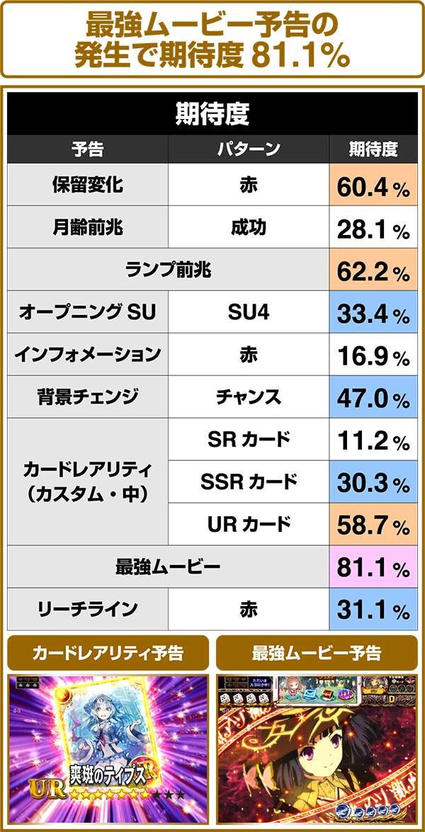 カードはレアリティがUR以上なら高期待度となり、UR<UUR<LLRの順にアツい。