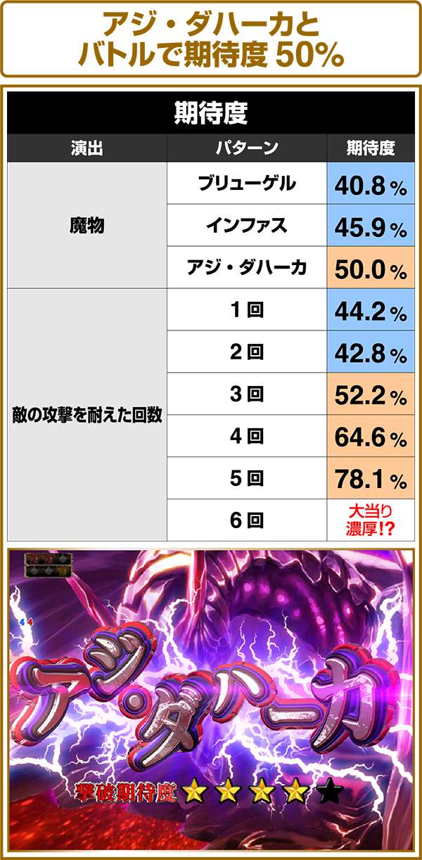 魔物の攻撃に耐えるほど期待度が上昇し、6回耐えられれば大当り濃厚となる!?