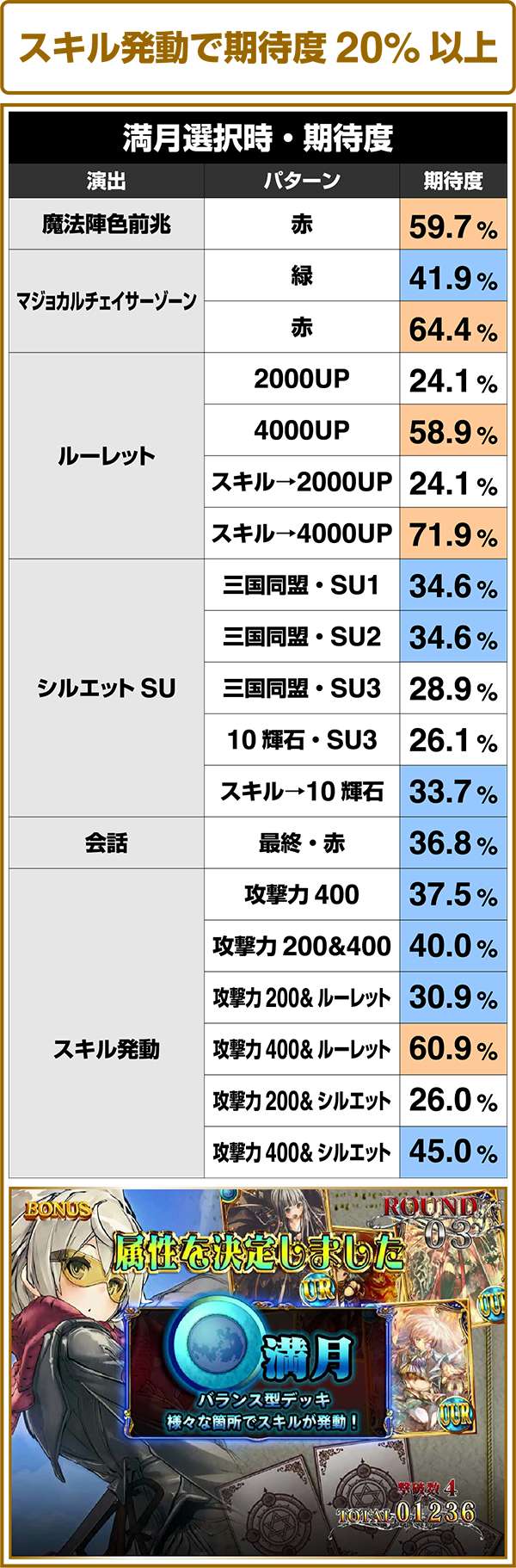 満月はスキルの発生頻度と期待度のバランスがとれている属性。
