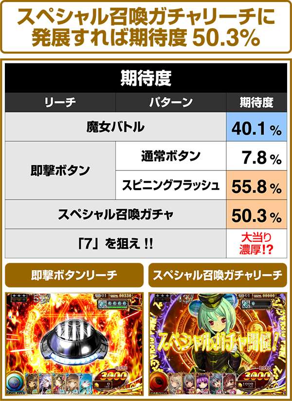 召喚ガチャは盤面右下にある召喚ガチャ7セグにレアカード出現率が表示される。出現率が高いほどチャンス!?