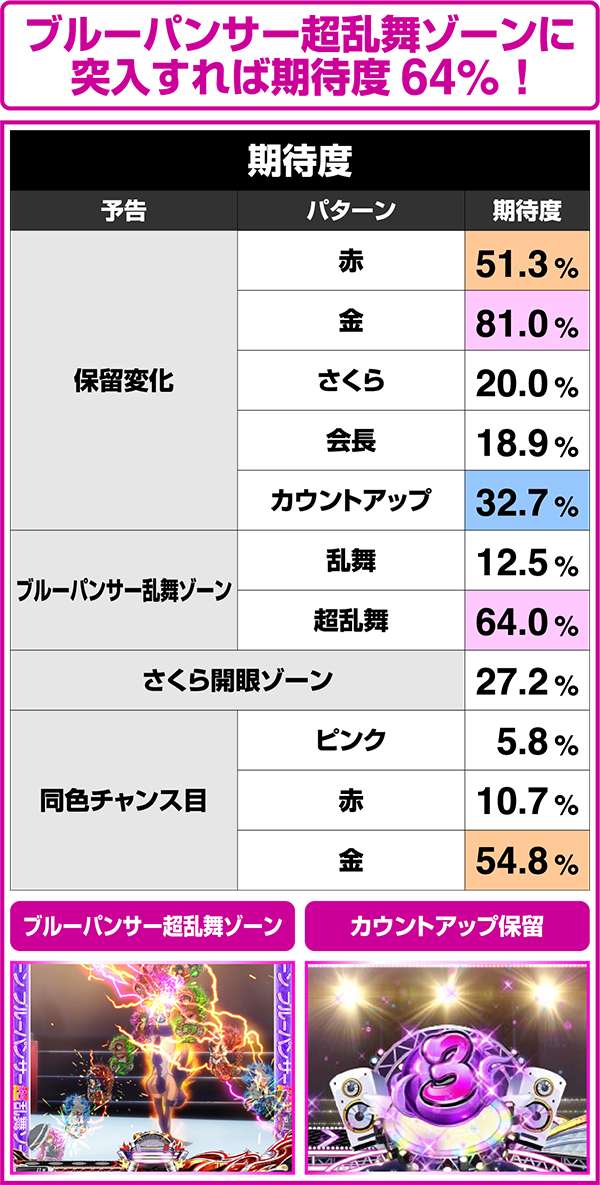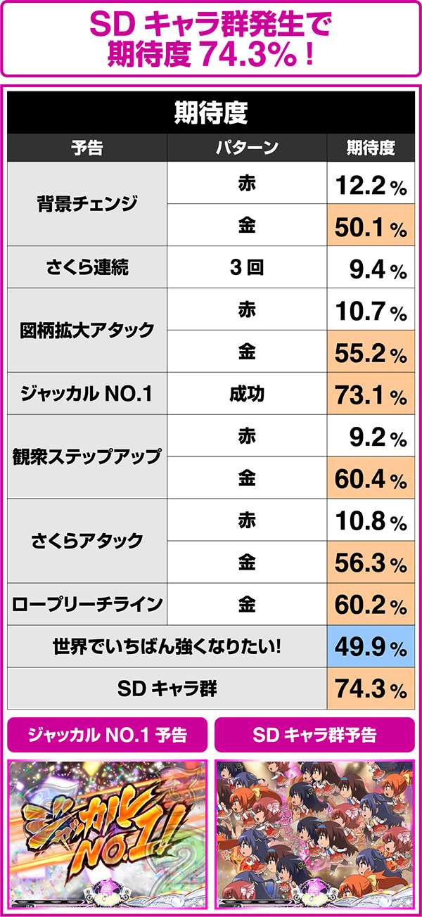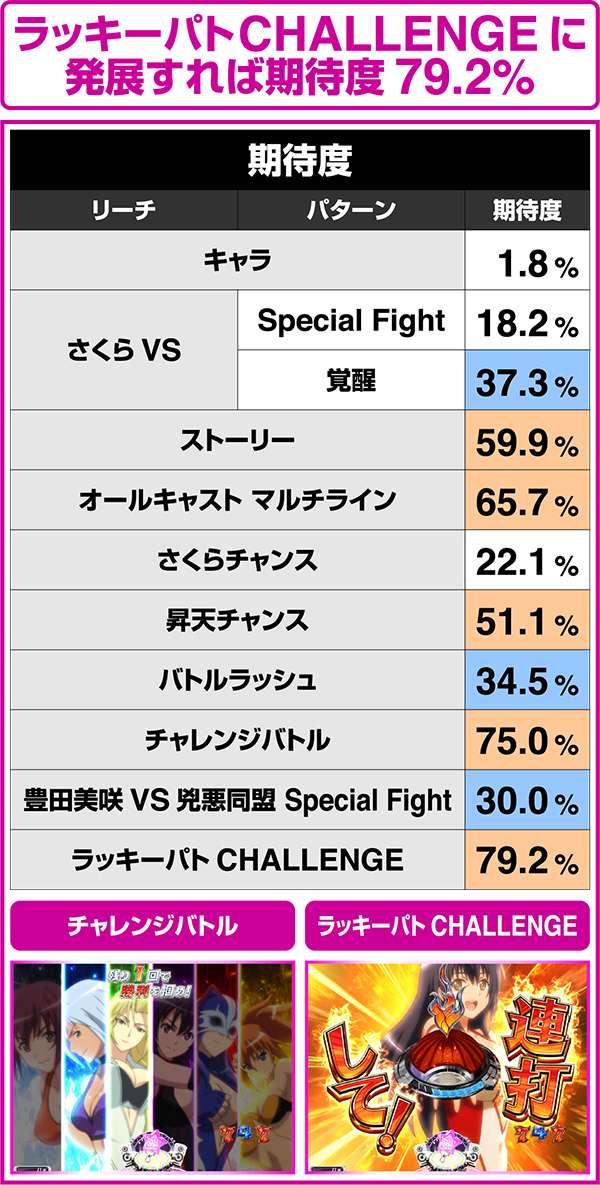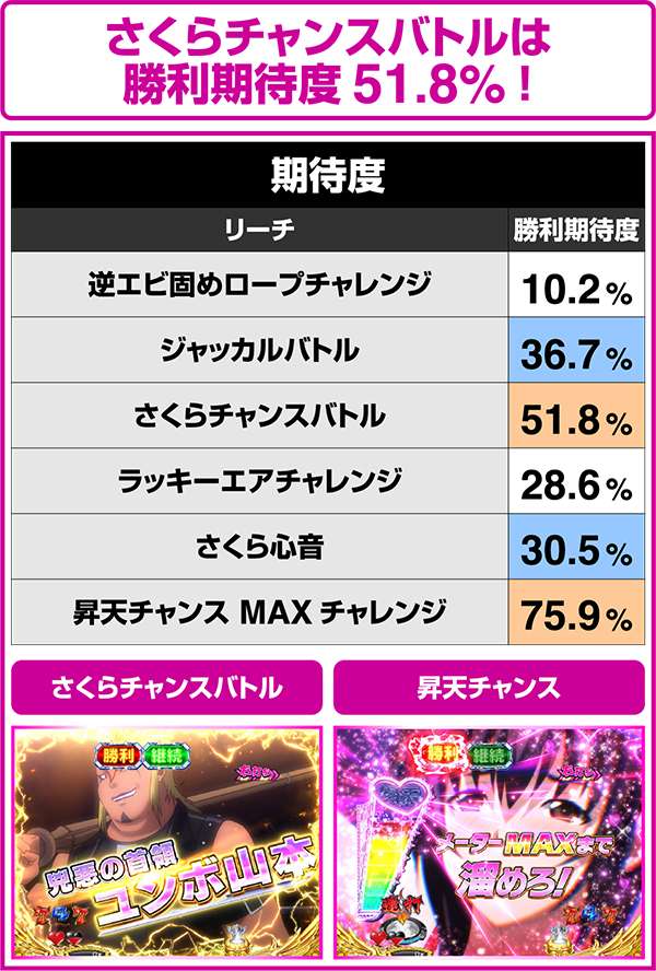 チャンスアップはさくらVSリーチと同様のポイントが多くなっている。