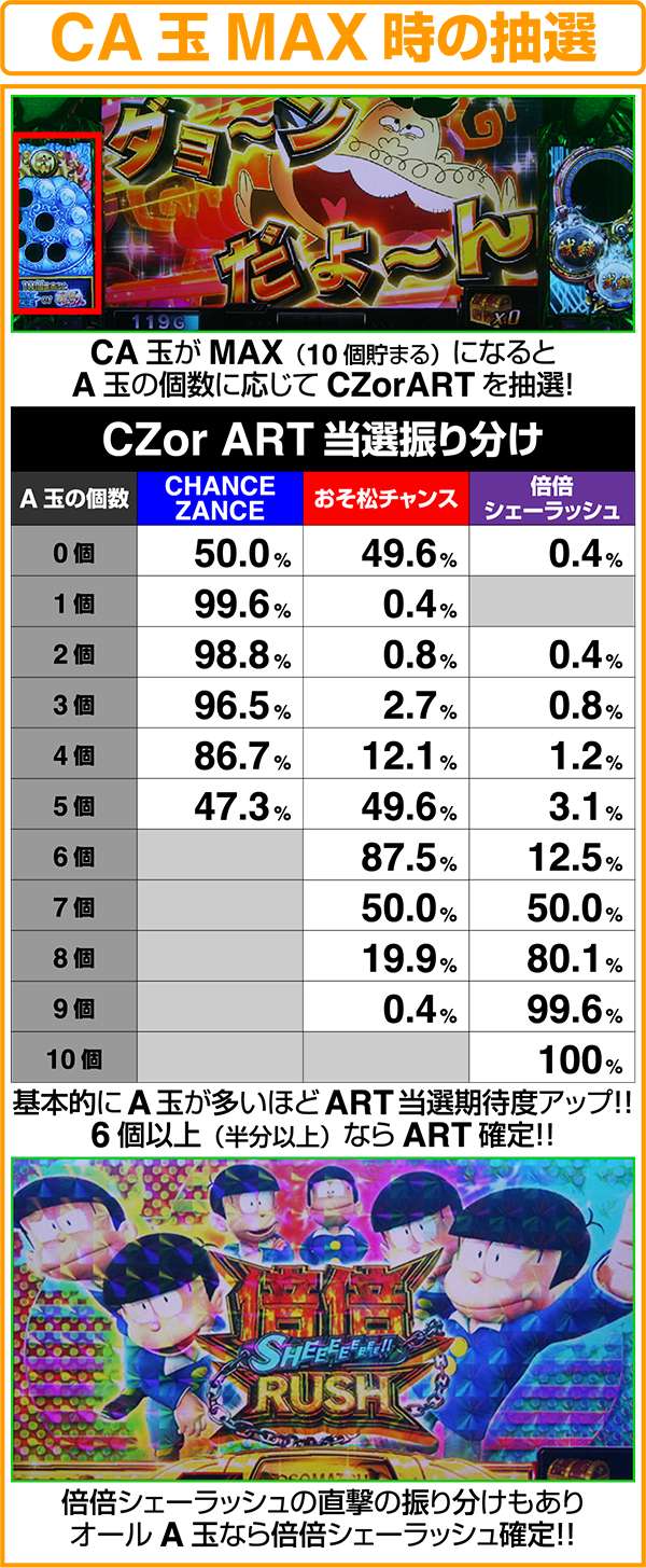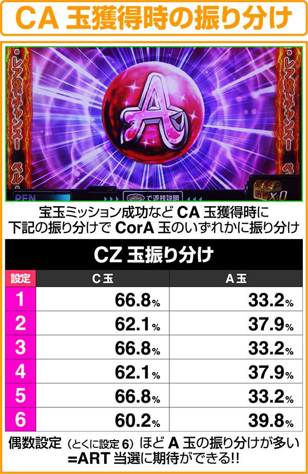 ちなみに、上表の抽選がおこなわれないゾロ目ゲーム数ではCA玉を獲得するため、いずれのゾロ目もチャンスであることに変わりはない。