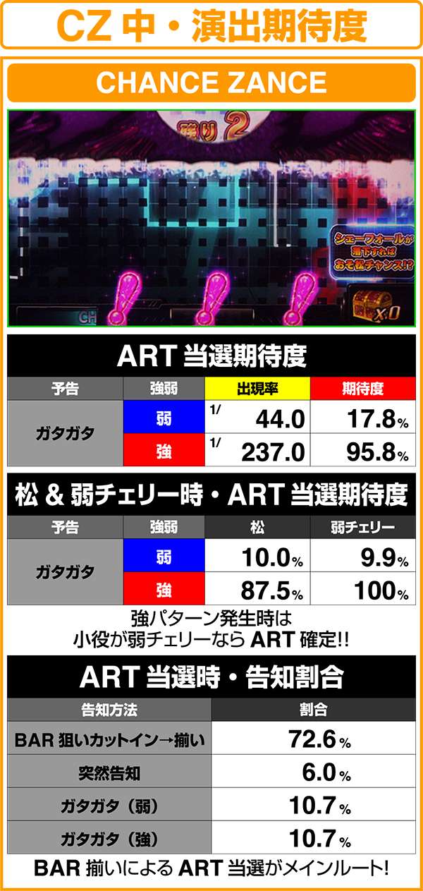 演出情報 > 共通 > CZ中の演出出現率とART期待度を更新しました