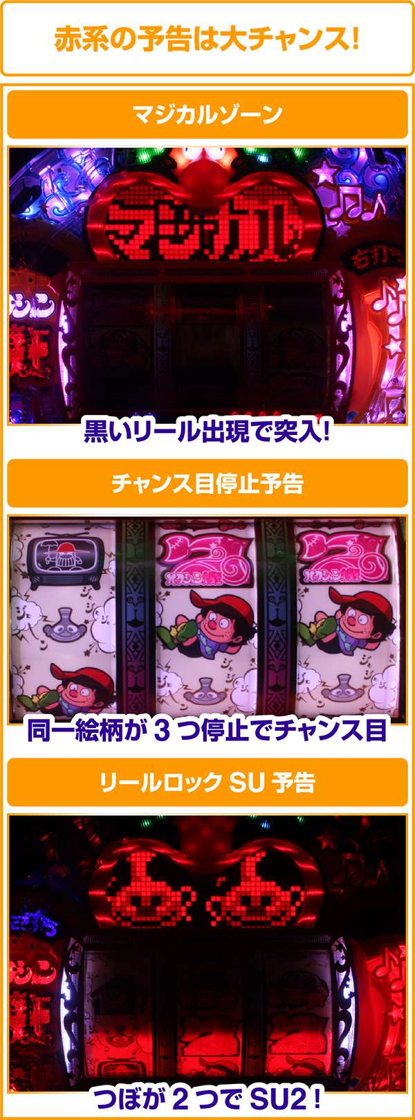 マジカルゾーン突入後はリールのフラッシュに注目。白黒にリールがフラッシュし、白い部分がバツ(X)になればトリプルリーチに発展!?
