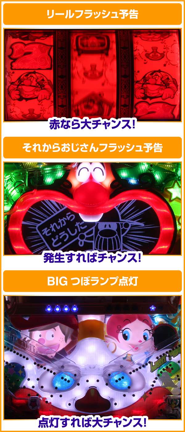 発展経路はSP発展時にカンちゃんのくしゃみ、それからおじさんフラッシュ発生から、リーチ後にいきなり発展など複数搭載。
