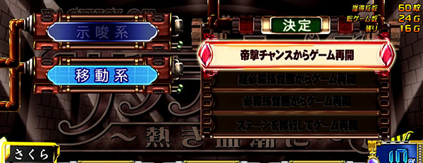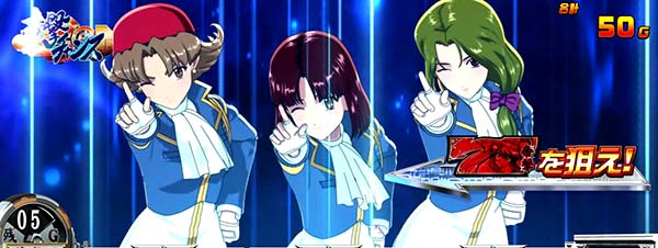 滞在中にレア役を引いた場合は帝撃チャンス自体のゲーム数を上乗せし、CBの次ゲームと7揃いカットイン発生時はゲーム数の減算がストップ。そのため、カットイン発生時は上乗せのチャンスかつ特化ゾーンが終わることはない。