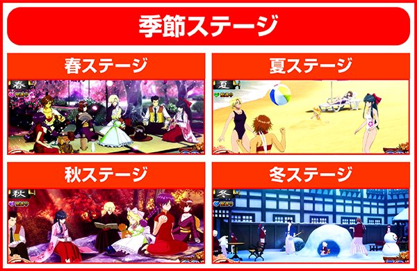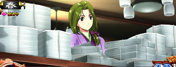 1Gあたりの純増約2.0枚のART「帝撃ラッシュ」を搭載し、華麗な舞台の幕が開ける。 本機の最重要要素となるのが好感度。MAX到達時は、通常時はおもにCZを抽選、ART中はART性能の強化がおこなわれる。好感度は全状態で引き継ぐといった要素も持つだけに、引き損は一切なし。レア役やステージに応じた対応役(季節役)で好感度をアップさせ、勝利を目指そう。自力感のあるART中のバトルも必見だ。 |