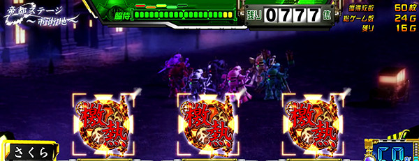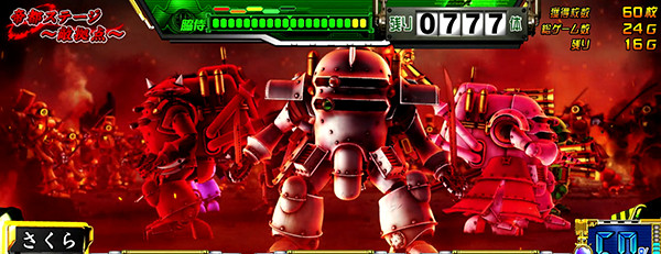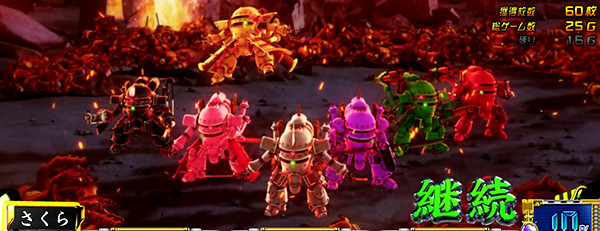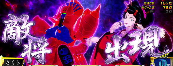 脇侍バトルのゲーム数を消化or脇侍全撃破から突入する継続バトル。バトルに勝利すれば次セットで新たな敵将が出現し、継続の場合は同じ敵将が登場する。バトルが継続or勝利した場合は20〜40Gのゲーム数上乗せが発生する。