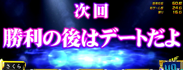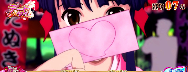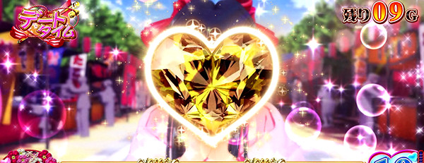 デートタイム中は、リプレイ以外ならゲーム数上乗せが確定。レア役とCBならARTのゲーム数上乗せ+デートタイム自体のゲーム数上乗せを同時におこなう。上乗せしたゲーム数は、液晶下部のハートとしてストックされ、最終ゲームでハートの中身(ゲーム数)を開放し、獲得したゲーム数を表示する。
