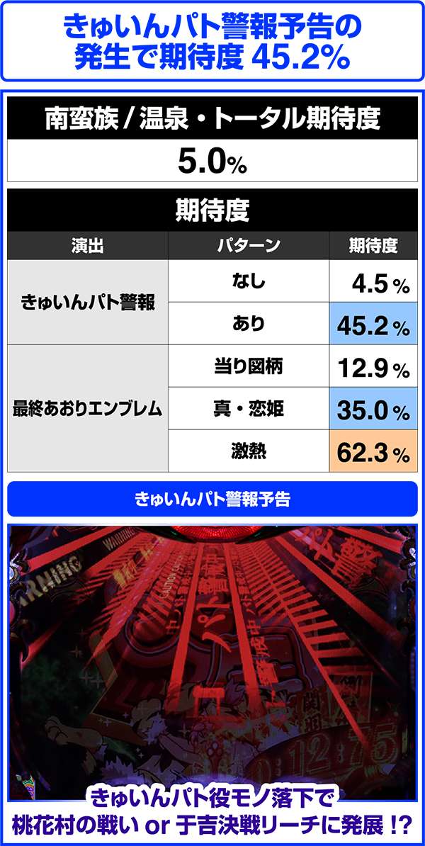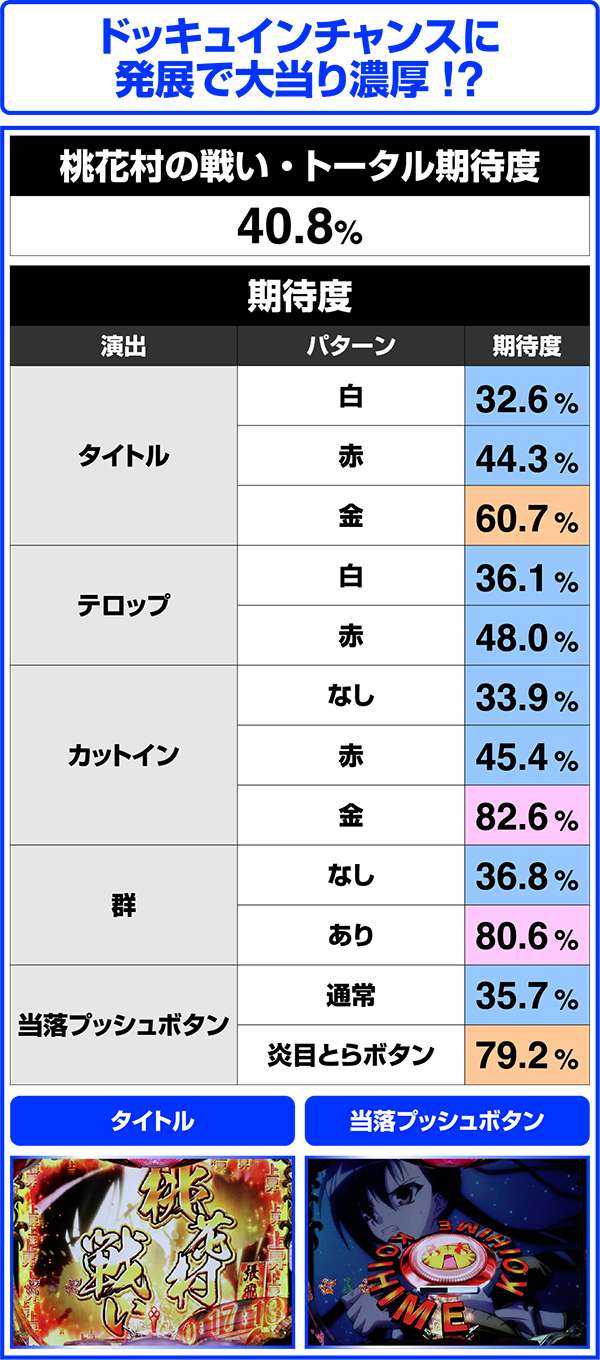 また、ドッキュインチャンスが発生した場合は桃花村の戦いと同様に大当り濃厚!?