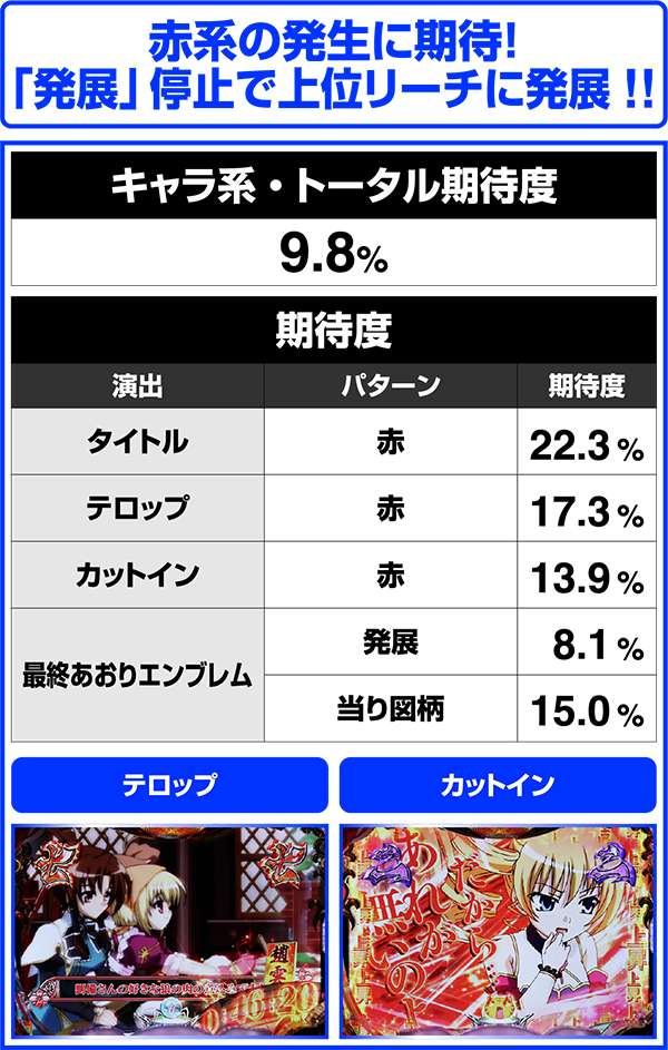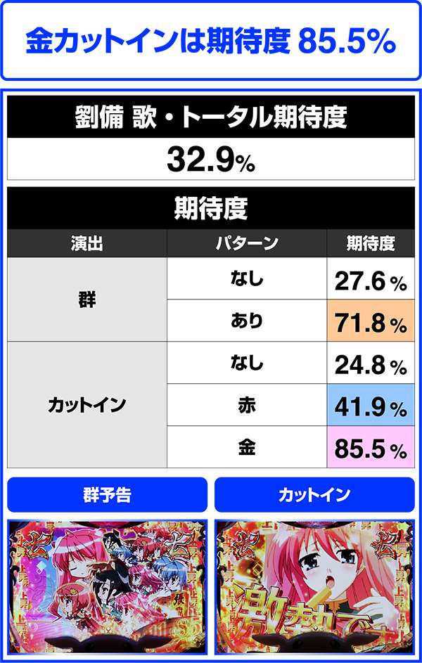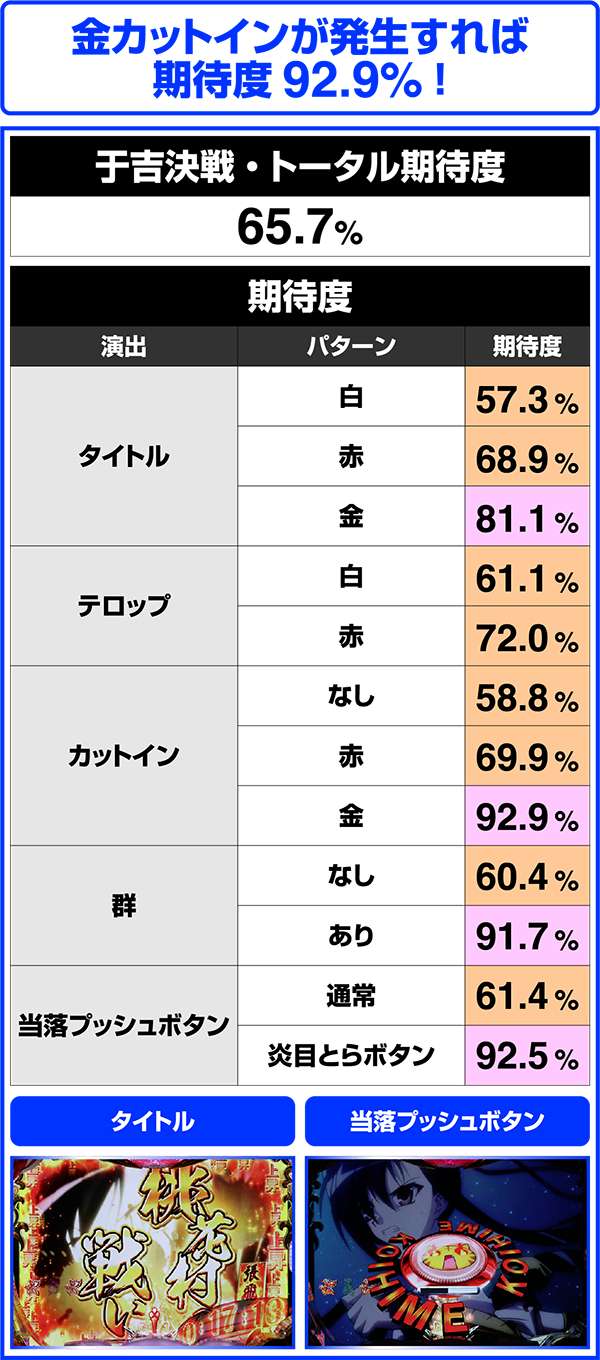 タイトルとカットインの金や群予告、炎目のとらボタンの発生に期待したい。
