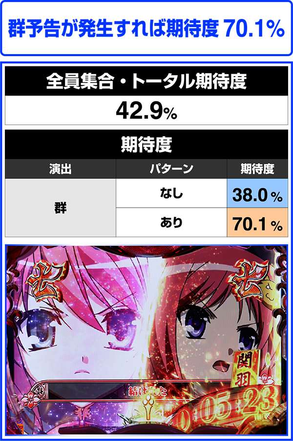 群予告や炎目とらボタンが出現すれば期待度は90%超!