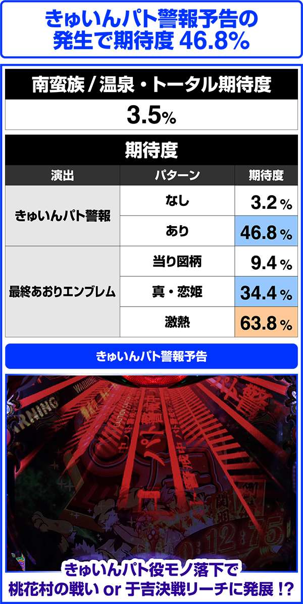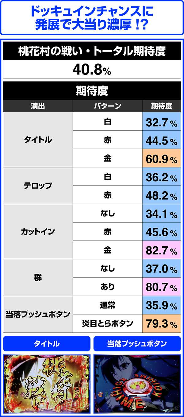 また、ドッキュインチャンスが発生した場合は桃花村の戦いと同様に大当り濃厚!?