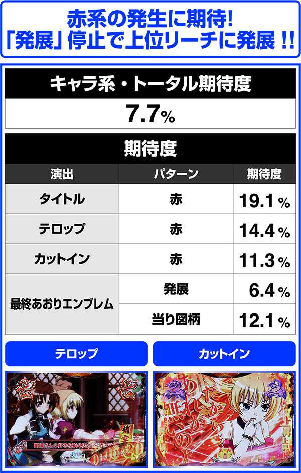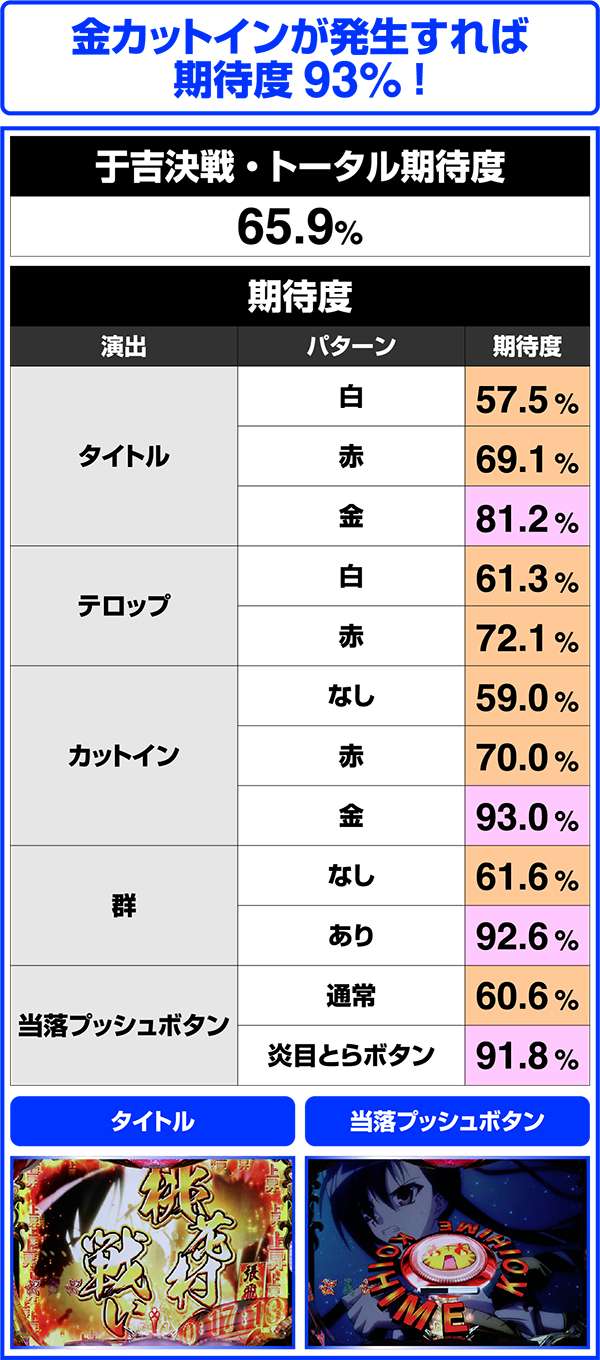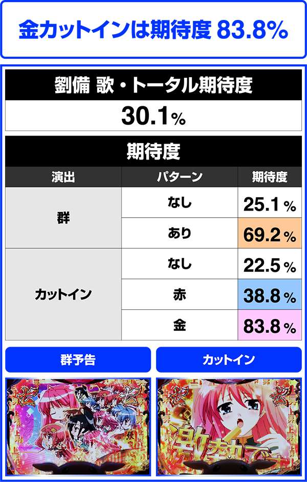 タイトルとカットインの金や群予告、炎目のとらボタンの発生に期待したい。