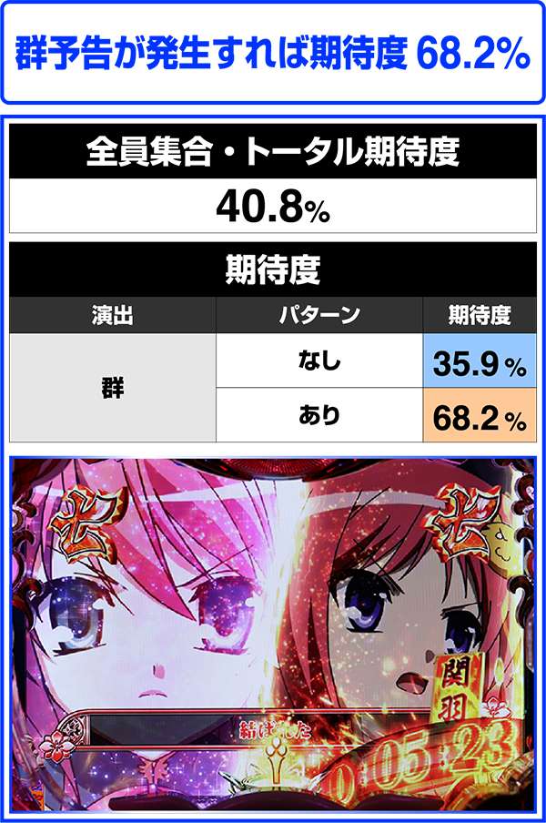 群予告や炎目とらボタンが出現すれば期待度は90%超!