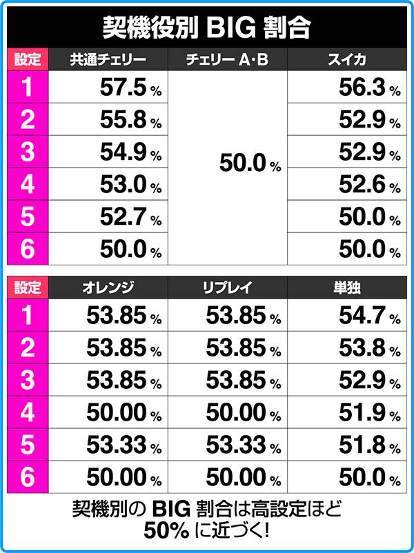 解析情報ボーナス時 > 基本・小役関連 > BIG中小役確率を更新しました