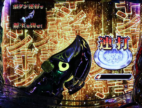 赤エフェクトならチャンスとなり、ガチソードを錬成すれば期待度アップとなるガチガチタイムに発展。ボタンPUSHで期待度を上昇させよう。